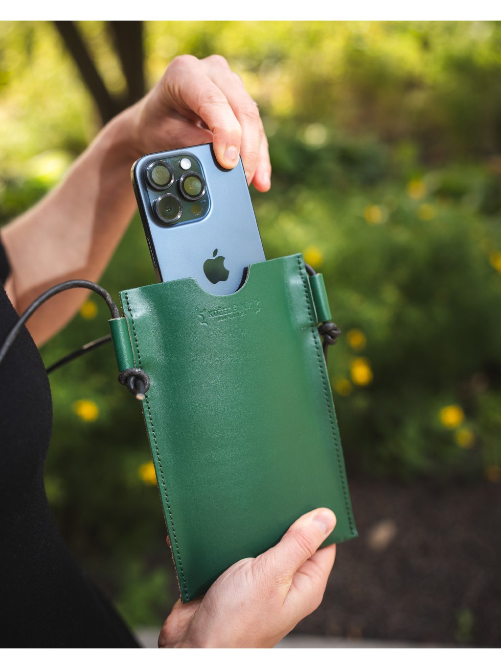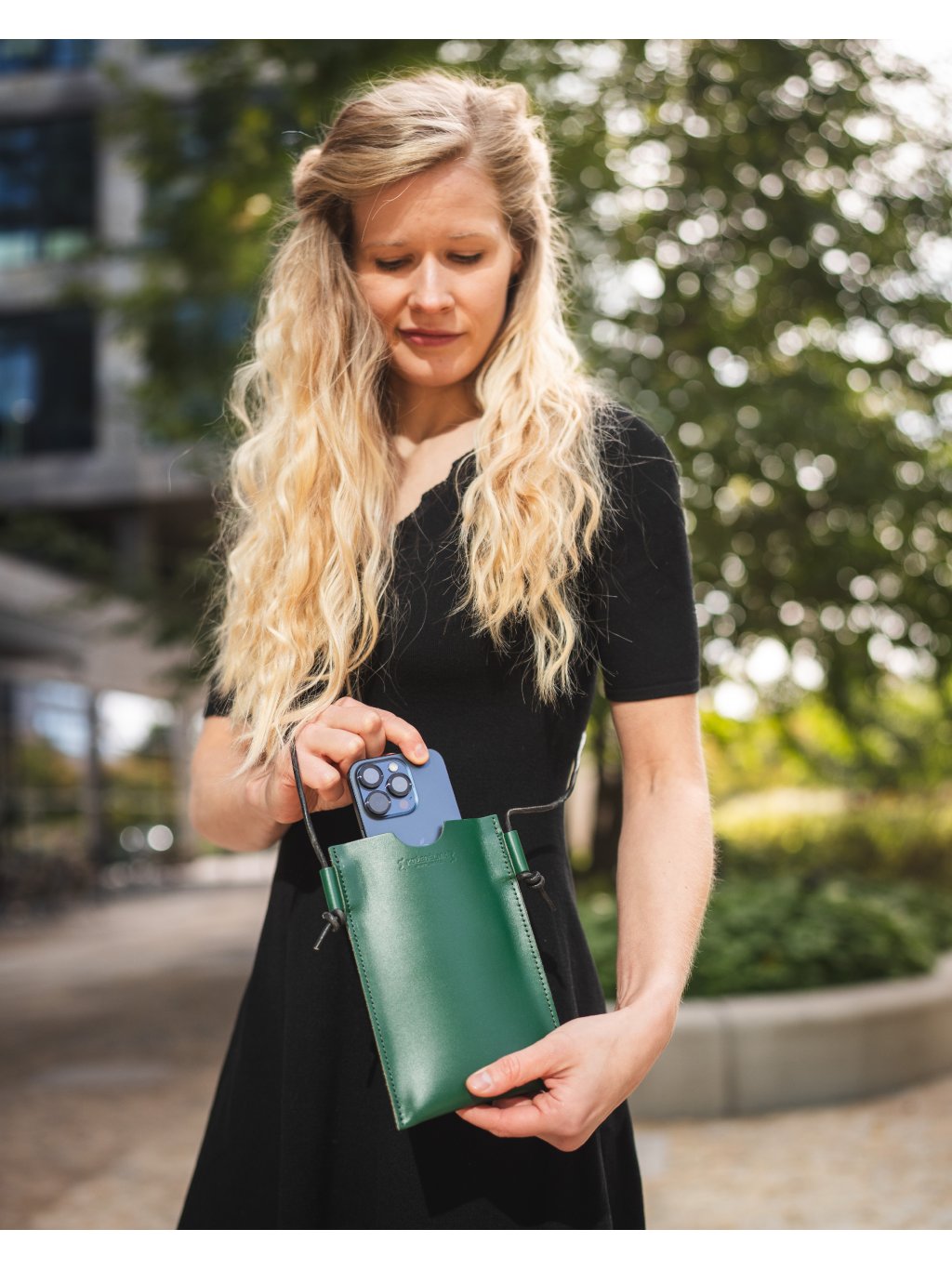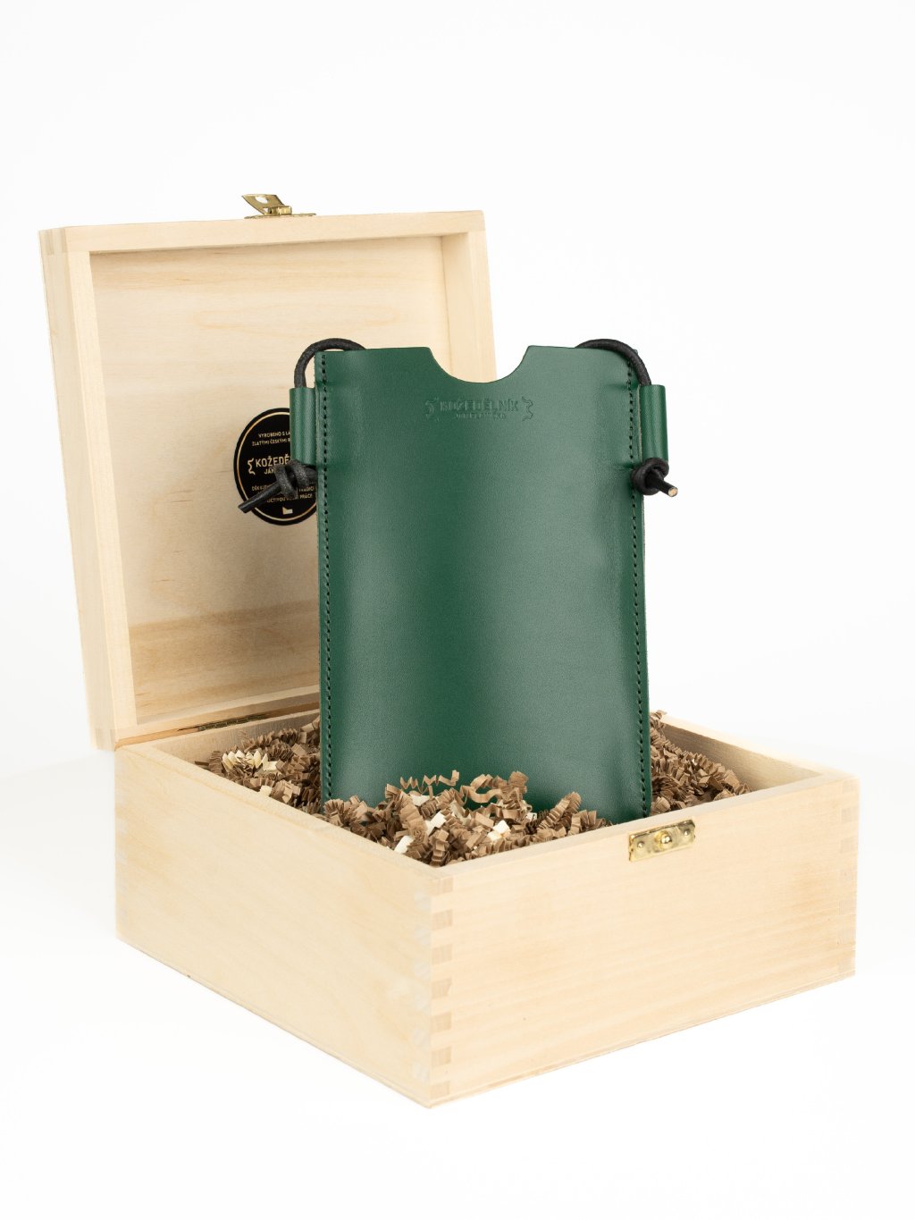 Laura pouzdro na telefon - zelené Pevné kožené pouzdro na telefon