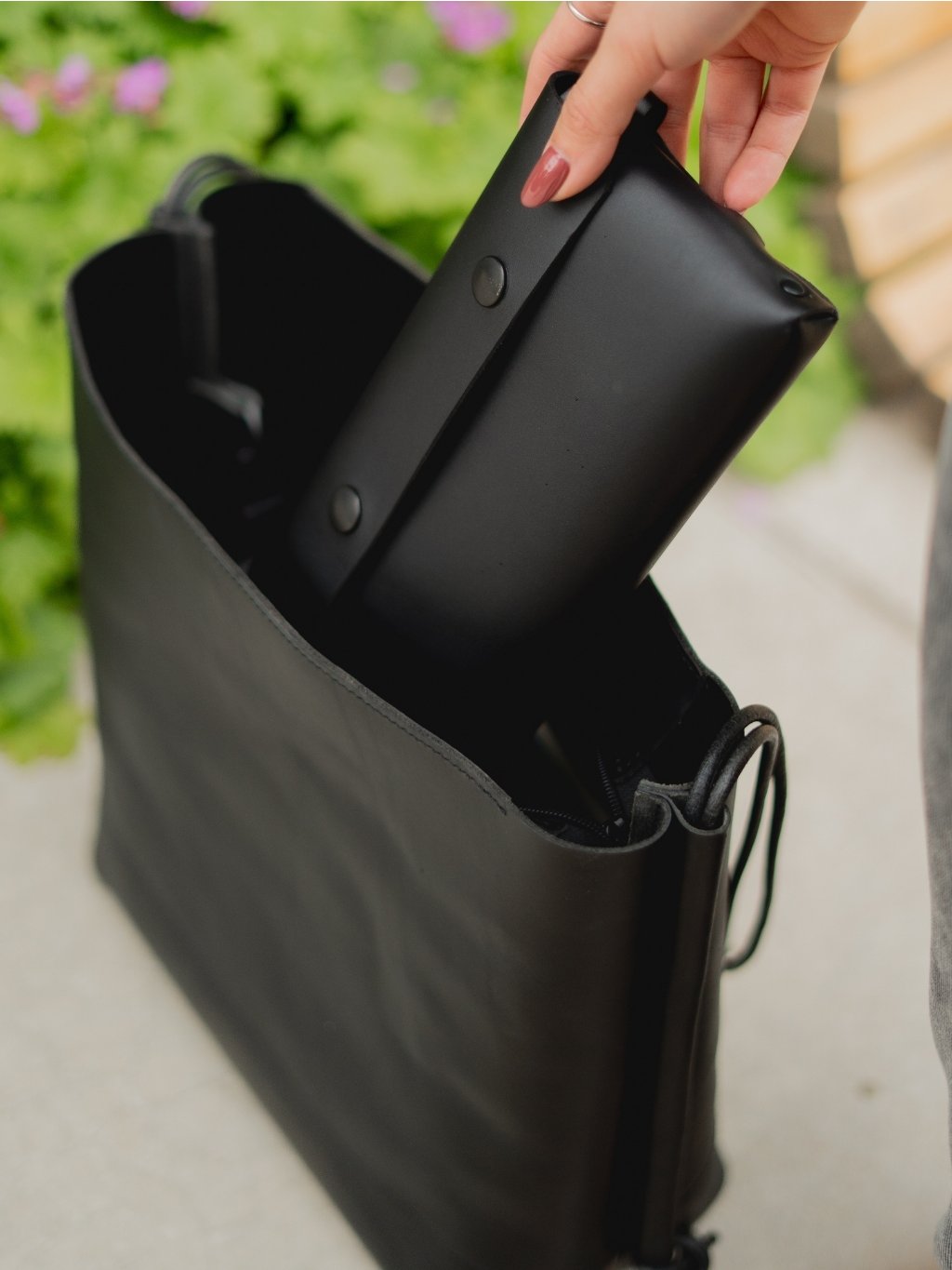 Laura Taška - černá Praktická kožená shopperka s nastavitelným pohodlným popruhem a s vyladěným doplňky.
