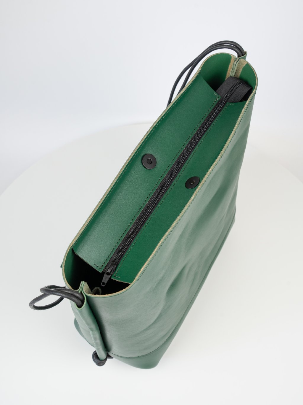 - Vyrobena z 2 mm silné hladké hovězí třísločiněné usně z Itálie — prémiová kůže, která je kvalitní a odolná.