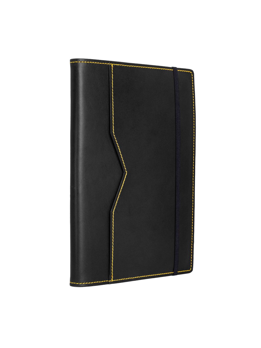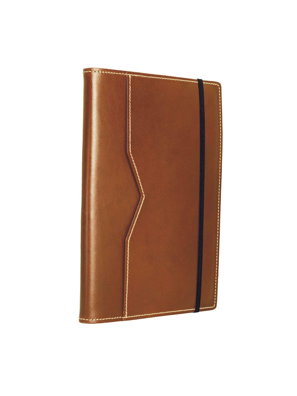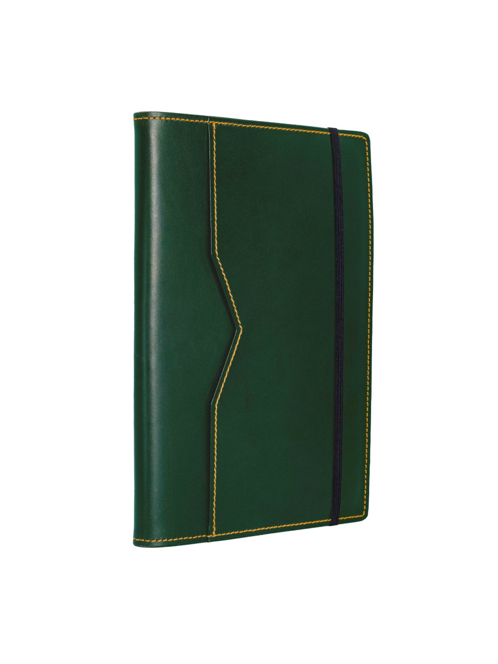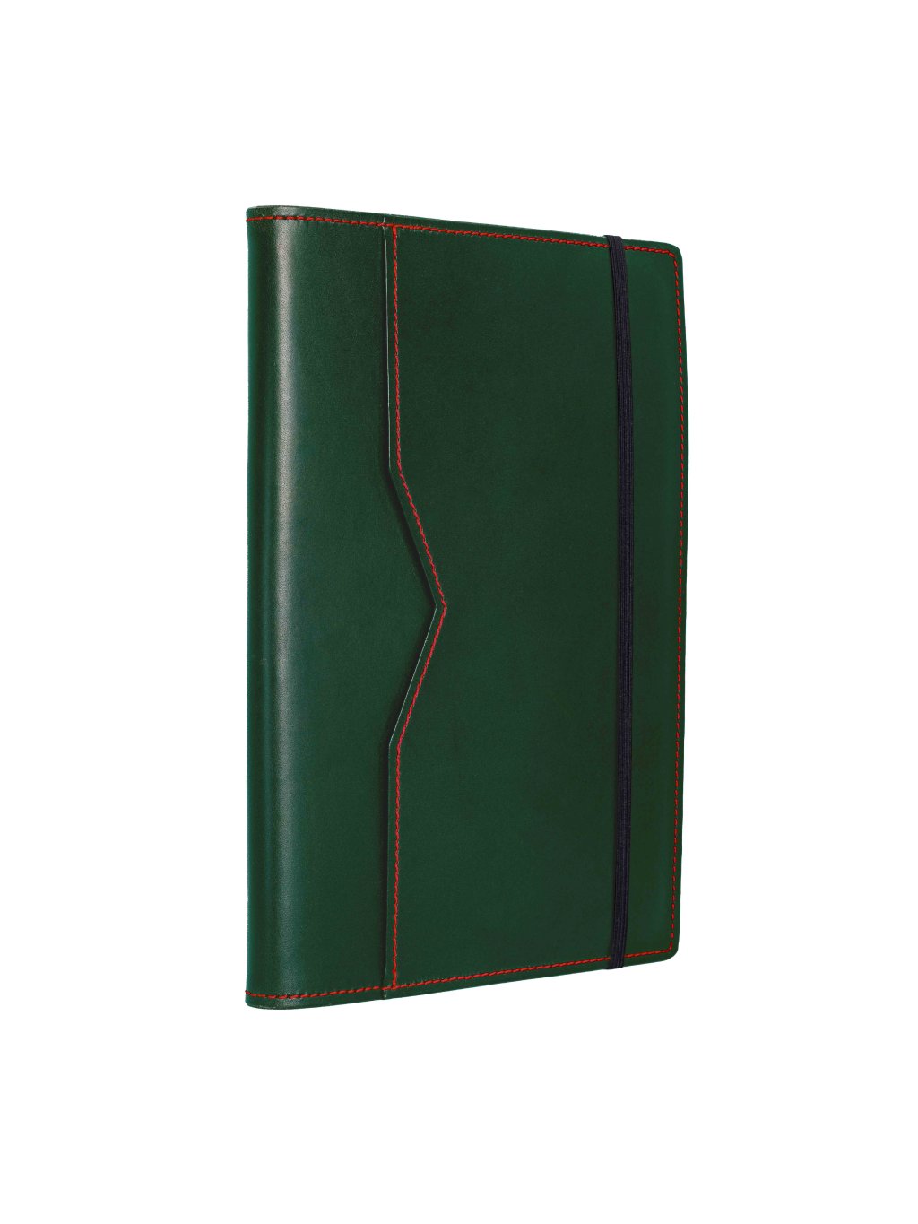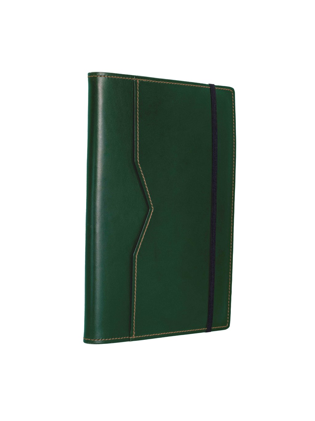 Luxusní kožený obal na zápisník A5 z prémiové italské kůže, s vnější kapsou a poutkem na pero.