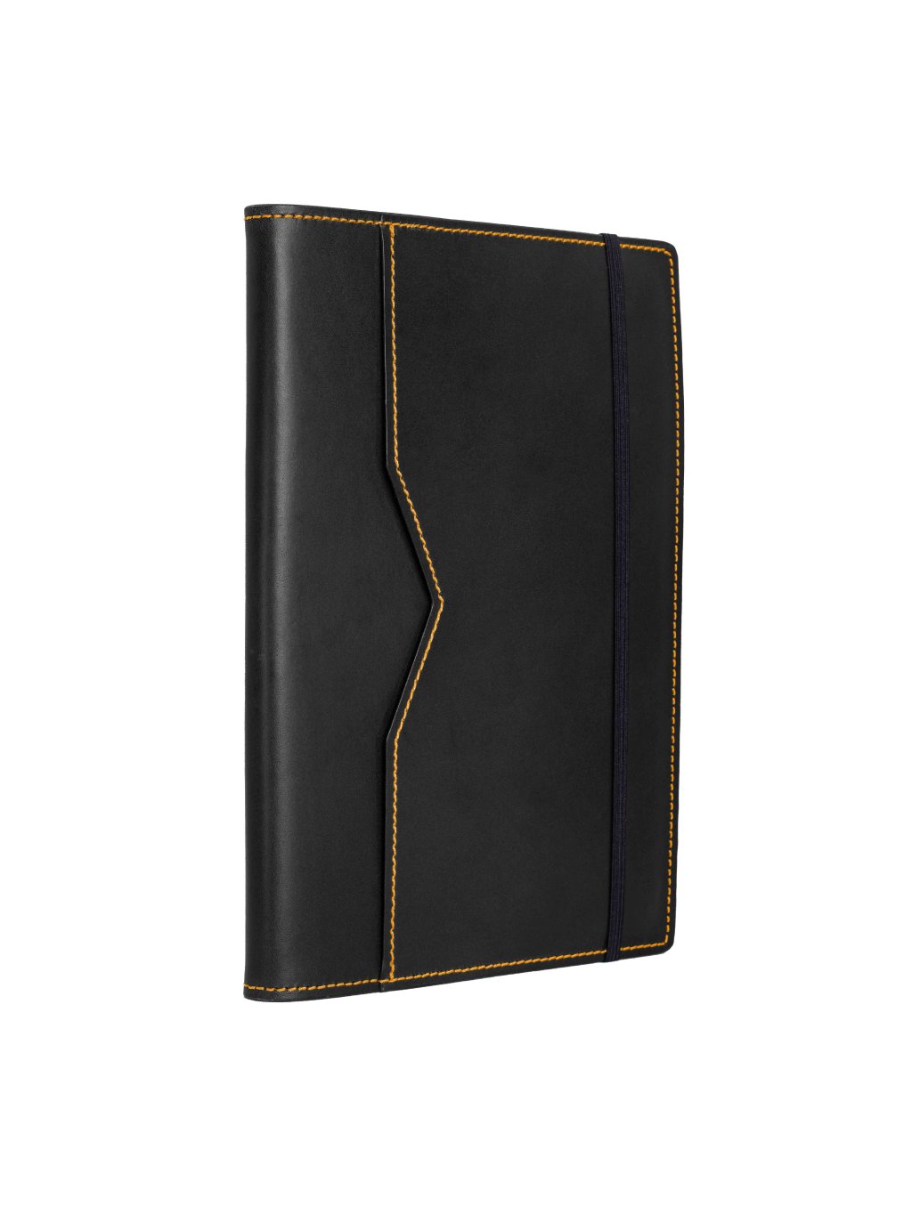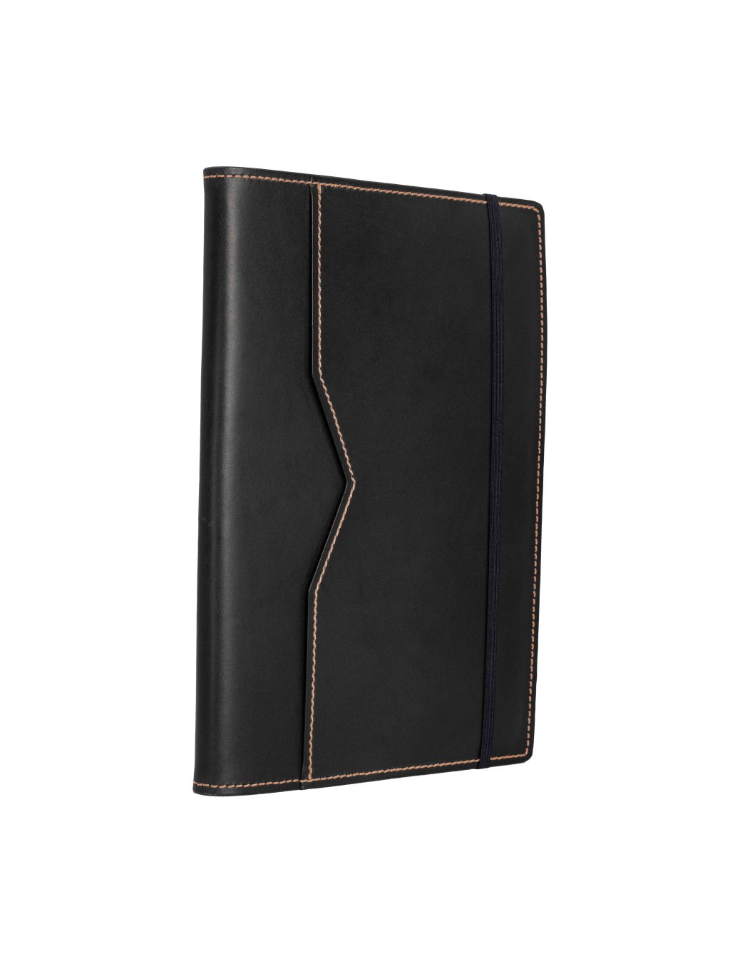 Elegantní obal z luxusní italské hovězí usně Buttero, do kterého se vejde zápisník ve formátu A5 (linkovaný, je součástí) nebo premiový Moleskine v jejich formátu L. Ideální pro běžné nošení, do tašky i batohu, kam se vejdou všechny vaše poznámky a projekty. Oproti ostatním variantám mých zápisníků má tato luxusní verze vnější plochou kapsu na papíry nebo poznámky, které potřebujete mít okamžitě poruce. Levá vnitřní část obsahuje 4 sloty na karty nebo vizitky. Pravá vnitřní strana je zcela hladká. Díky protažené konstrukci vnitřních "uší" obalu zůstávají stránky zápisníku při psaní dokonale rovné. Nechtěnému otevírání zabrání pruženka samotného zápisníku, chytře protažená skrz obal. Nechte si vyrobit originál přímo pro vás a vyberte si svou oblíbenou kombinaci barvy kůže i barvy šití, doplněnou ražbou monogramu nebo nápisu.