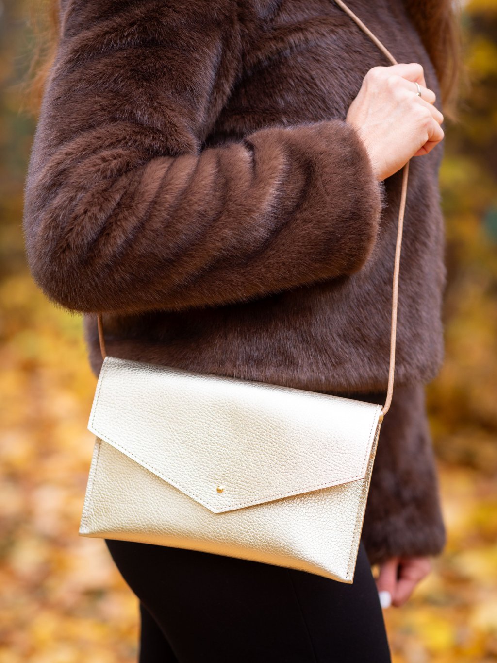 - Luxusní verze elegantního psaníčka Emily z jemné zlaté kůže