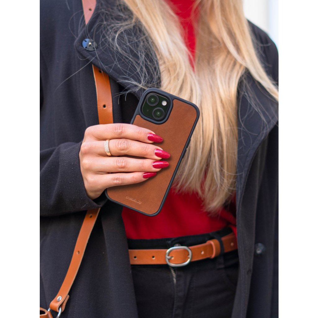 Magsafe Kožený kryt na telefon - koňakový Odolný kryt na telefon s barevnými koženými zády