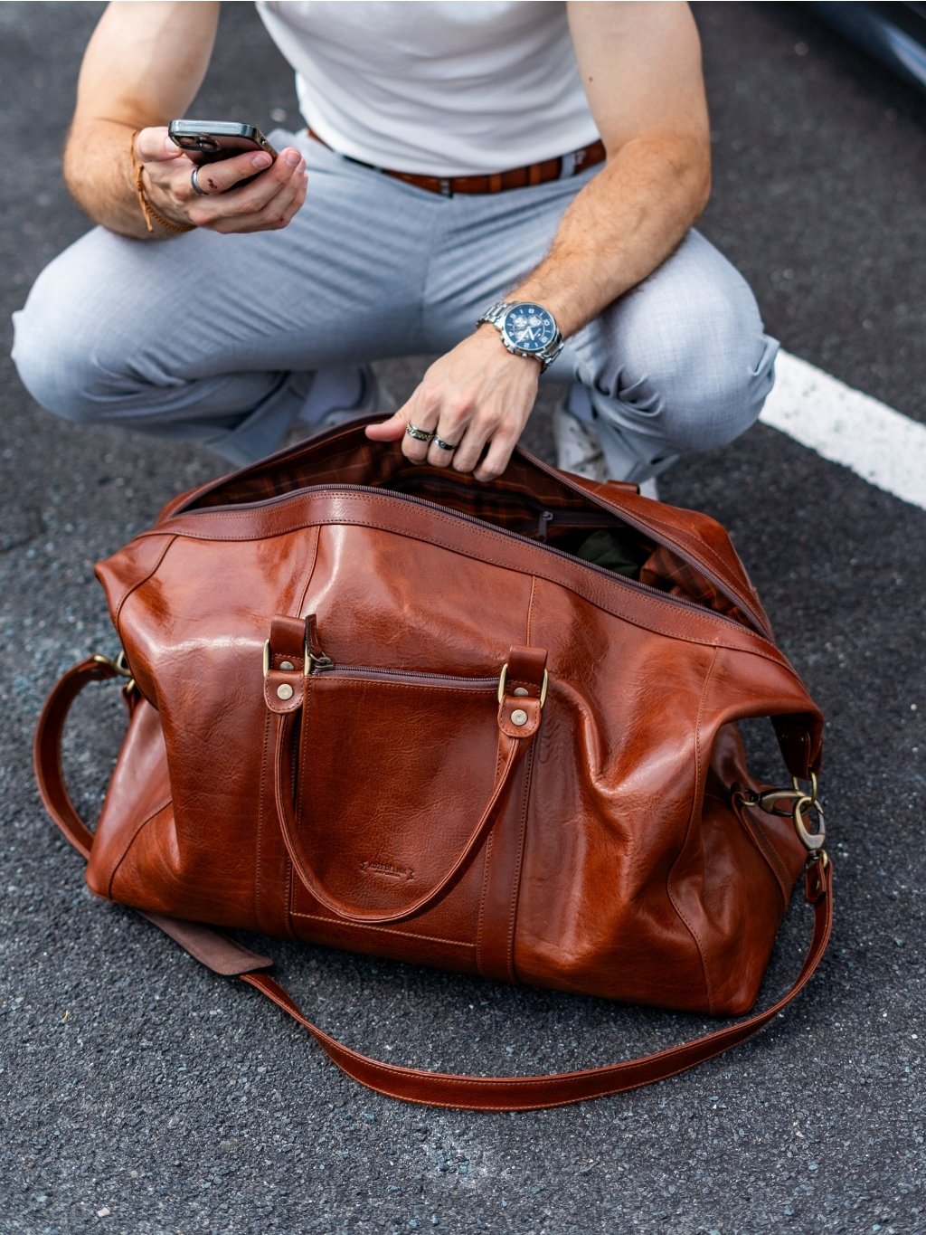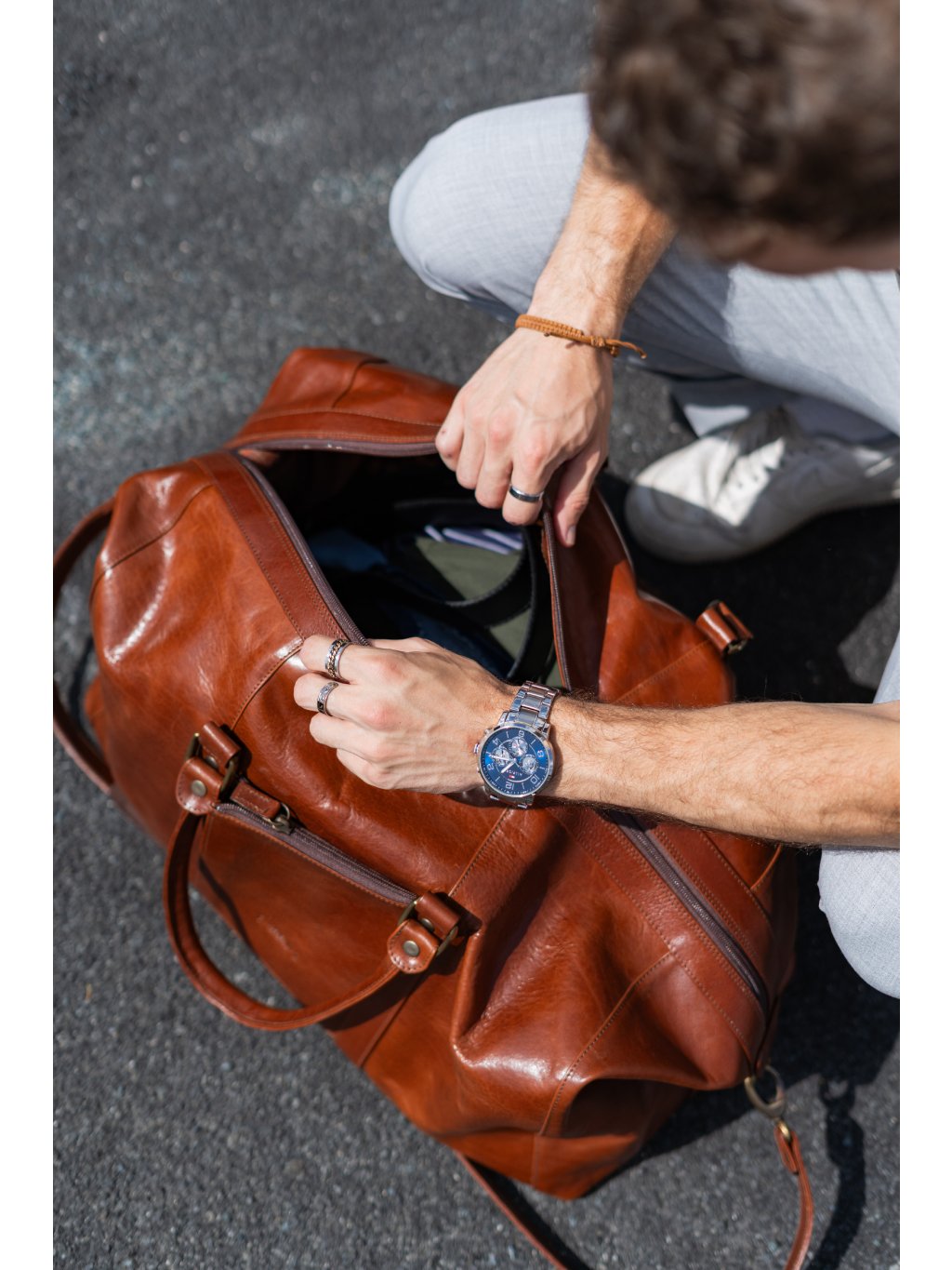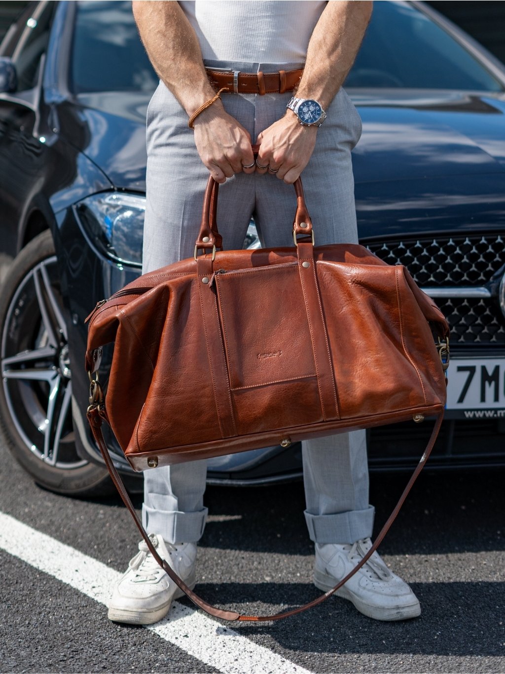 Dopřejte si styl a kvalitu s luxusní cestovní taškou z prvotřídní italské hovězí kůže, která se stane vaším společníkem na každé cestě. Její prostorný interiér s jemnou podšívkou a velkorysou hlavní komorou pojme vše, co potřebujete mít s sebou, ať míříte kamkoliv. Vnější kapsa na zip udrží vaše drobnosti vždy po ruce a bezpečí. Dvě pevná držadla a odnímatelný popruh přes rameno zajišťují maximální pohodlí při nošení podle vašeho stylu. Elegantní design v sobě spojuje funkčnost a prestiž – ideální pro muže, kteří si potrpí na kvalitu a nechtějí dělat kompromisy.