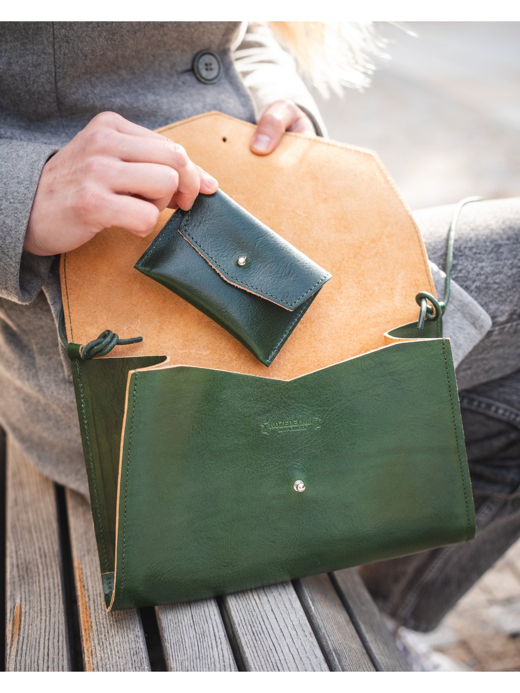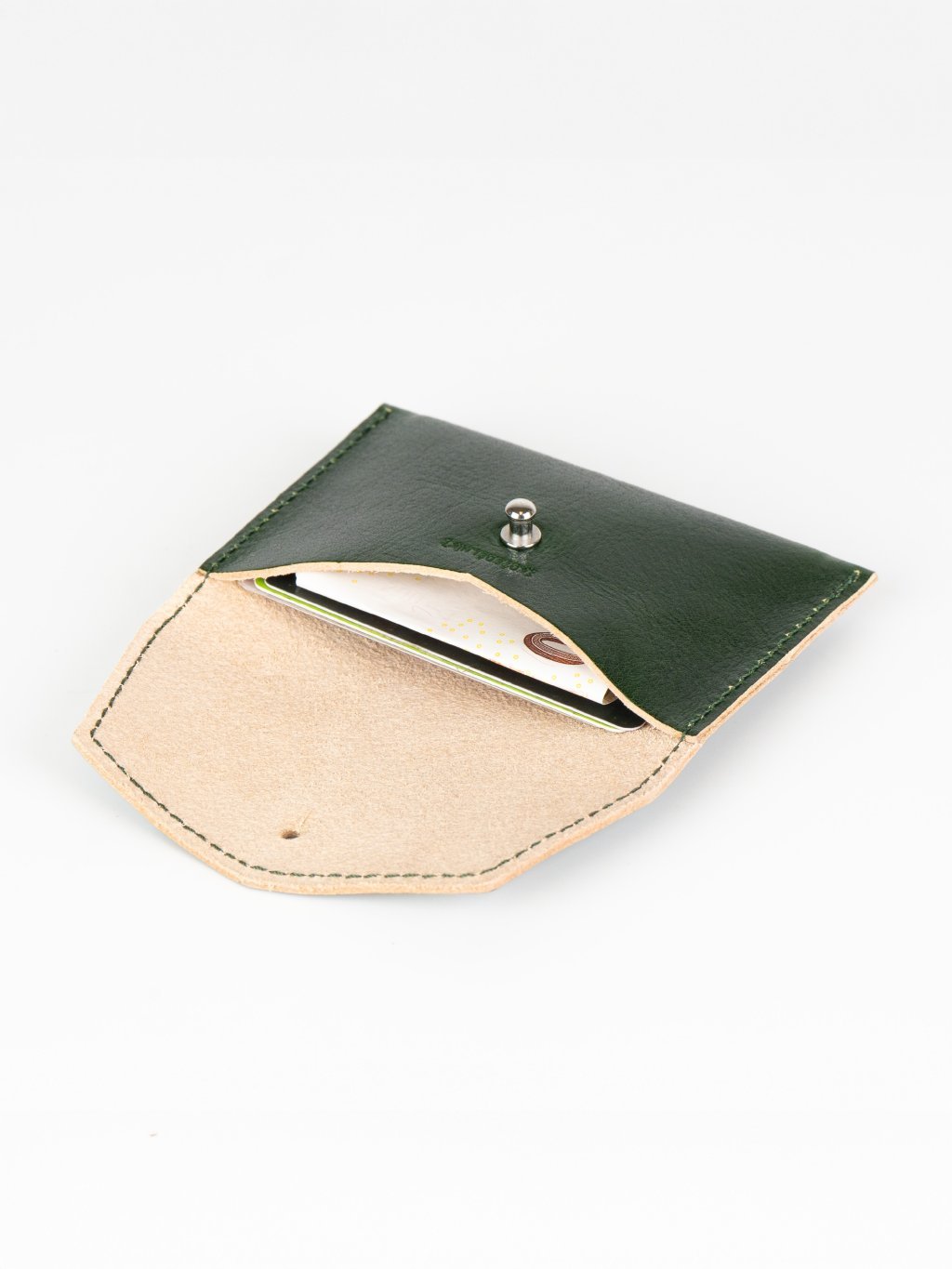 Minimalistická a elegantní kapsička, která skvěle ladí s našimi kabelkami Mia a ledvinkami Zoe. Je ušitá z jemnější hovězí kůže a dostupná ve více barvách. Díky kompaktní velikosti se pohodlně vejde do kapsy i kabelky. Pojme 10–12 karet, složené bankovky i pár drobných, a vše bezpečně drží sedlářský knoflík.