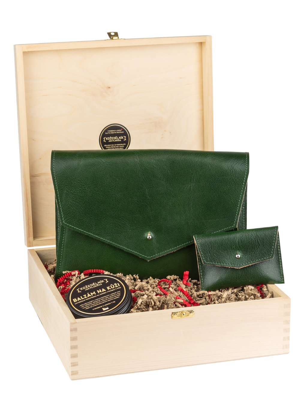 Mia DÁRKOVÝ SET kabelky a peněženky - zelený Cenově zvýhodněný set kožené kabelky a peněženky.