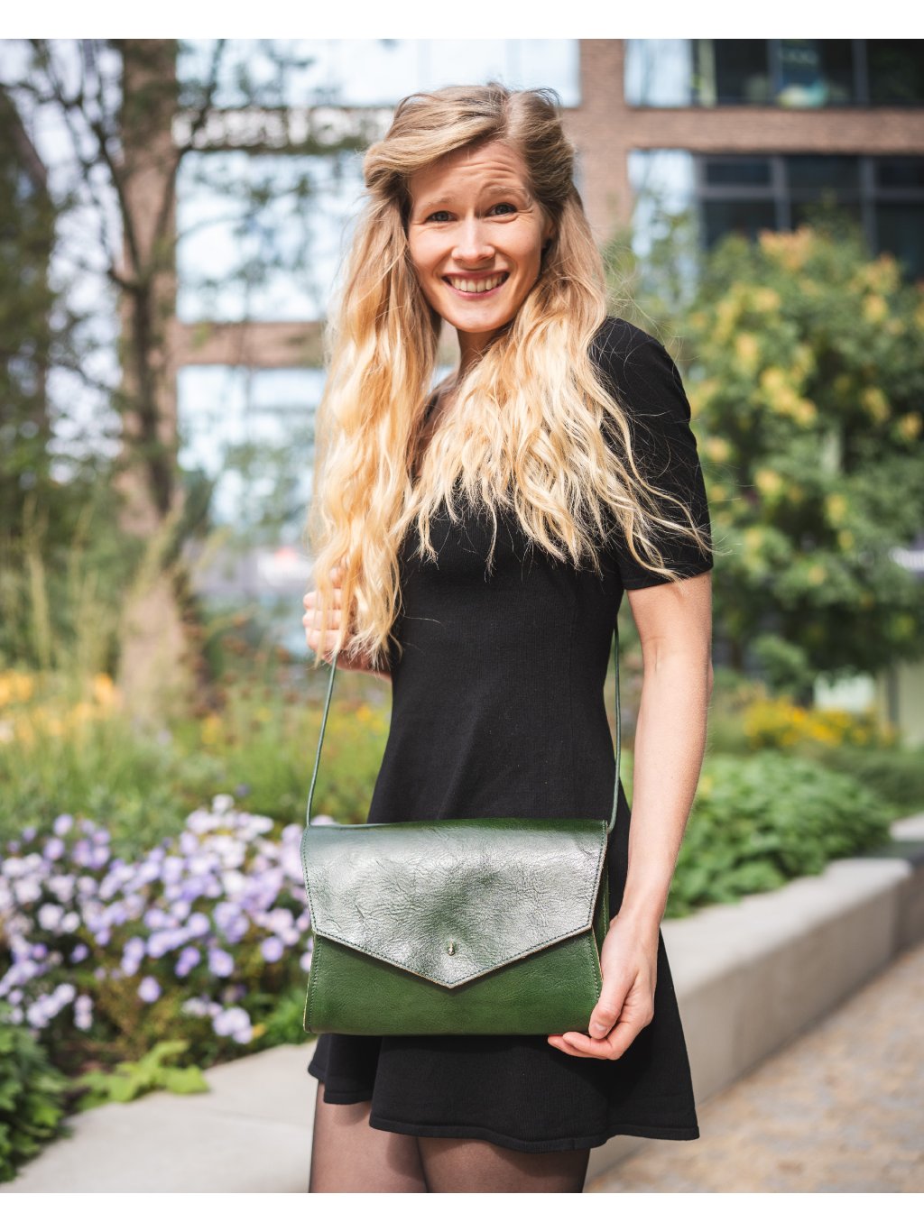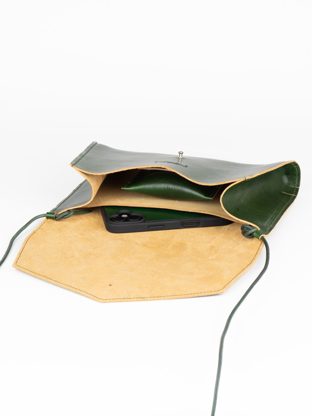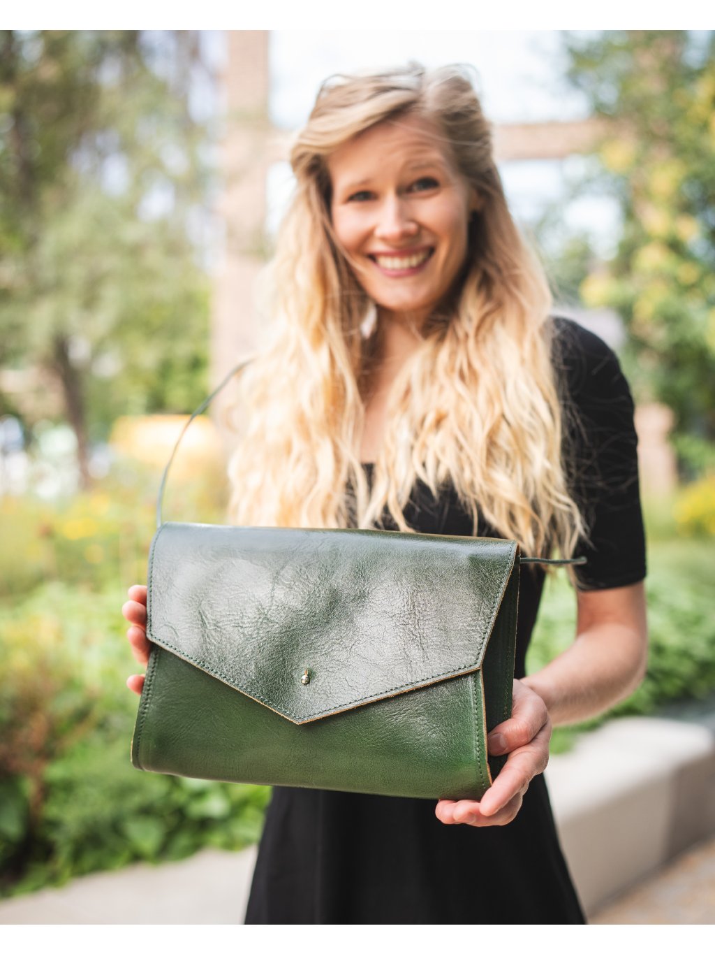 Tahle elegantní kabelka vychází z oblíbeného psaníčka, ale nabízí více prostoru díky chytrému rozevíracímu střihu. Pohodlně do ní uložíte telefon, klíče, peněženku i další nezbytnosti a oceníte i praktickou vnitřní kapsičku. Sedlářský knoflík zajišťuje jednoduché, ale spolehlivé zapínání. Nastavitelný kožený popruh s rozšířením si přizpůsobíte přesně podle sebe, případně ho můžete zkrátit nebo úplně schovat. Kabelku tak snadno proměníte v elegantní psaníčko do ruky i stylový doplněk na předloktí.