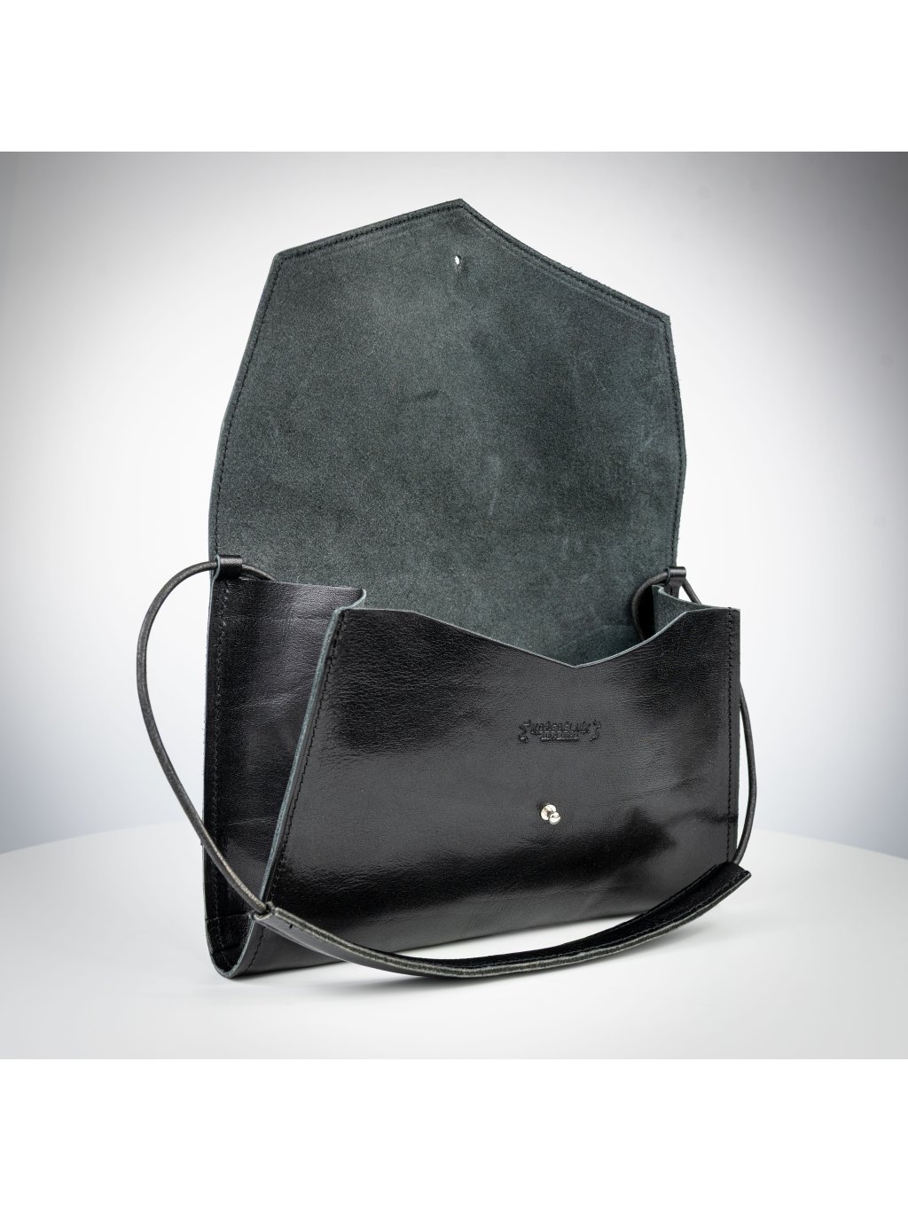 Tahle elegantní kabelka vychází z oblíbeného psaníčka, ale nabízí více prostoru díky chytrému rozevíracímu střihu. Pohodlně do ní uložíte telefon, klíče, peněženku i další nezbytnosti a oceníte i praktickou vnitřní kapsičku. Sedlářský knoflík zajišťuje jednoduché, ale spolehlivé zapínání. Nastavitelný kožený popruh s rozšířením si přizpůsobíte přesně podle sebe, případně ho můžete zkrátit nebo úplně schovat. Kabelku tak snadno proměníte v elegantní psaníčko do ruky i stylový doplněk na předloktí.