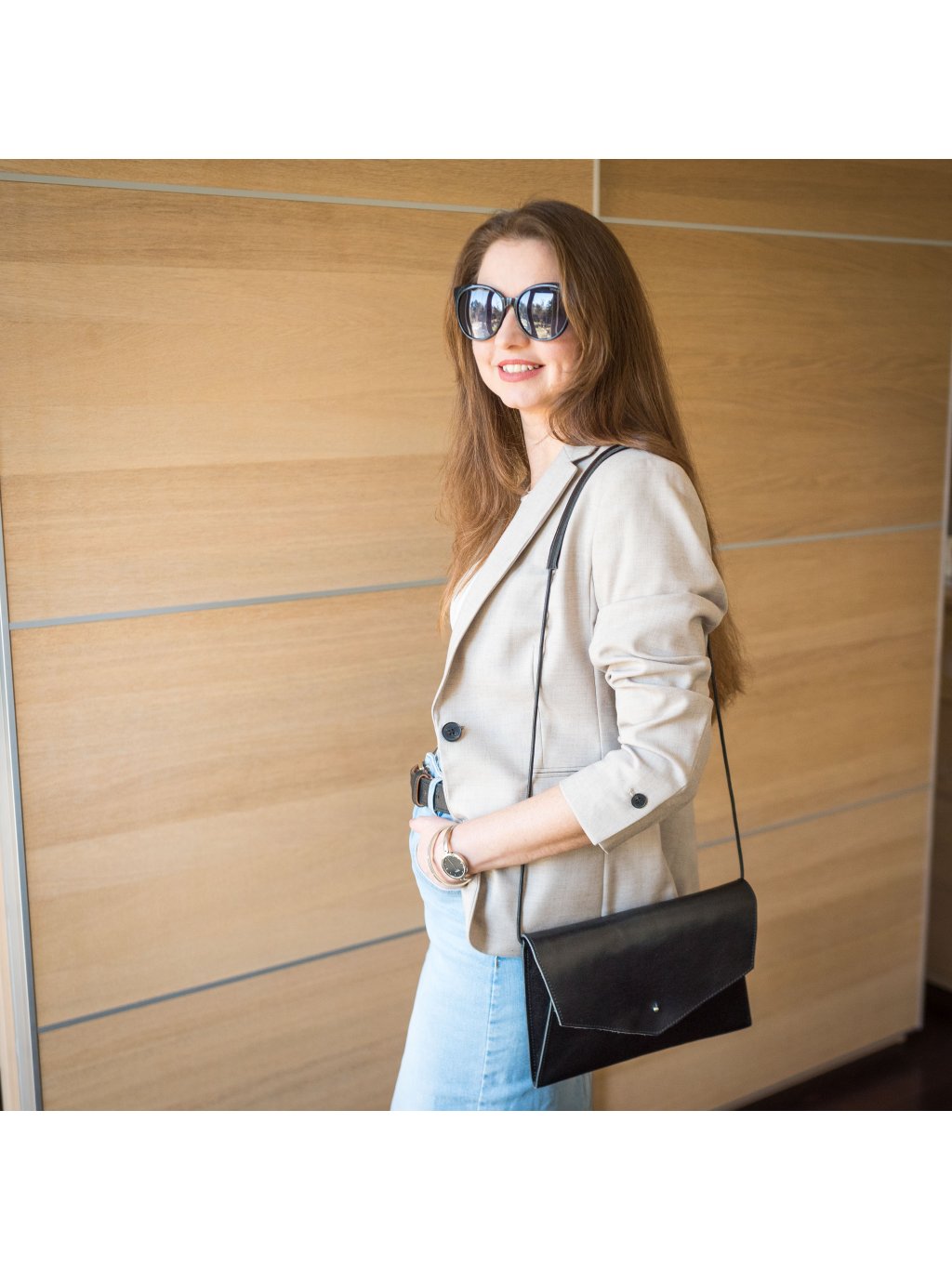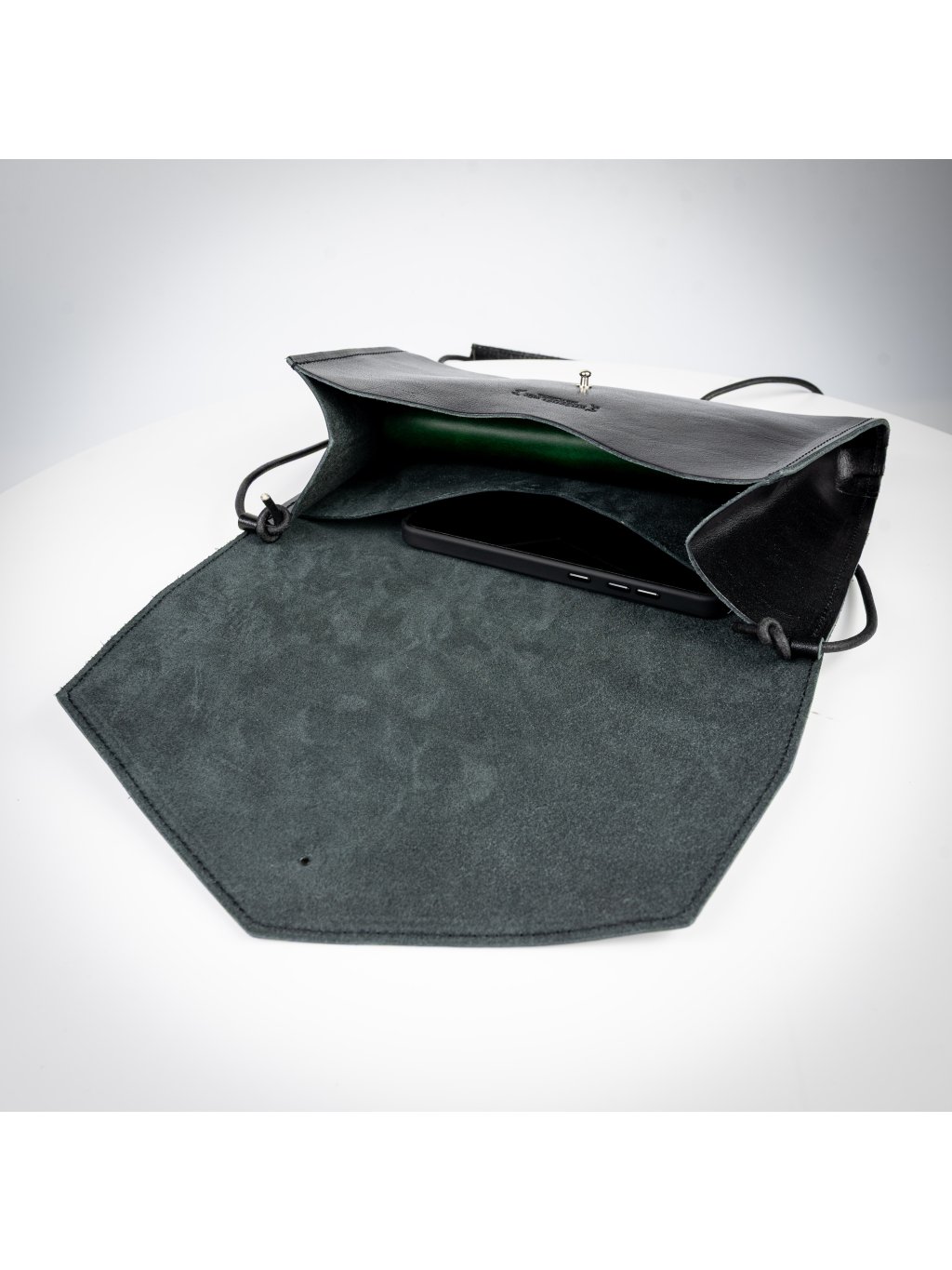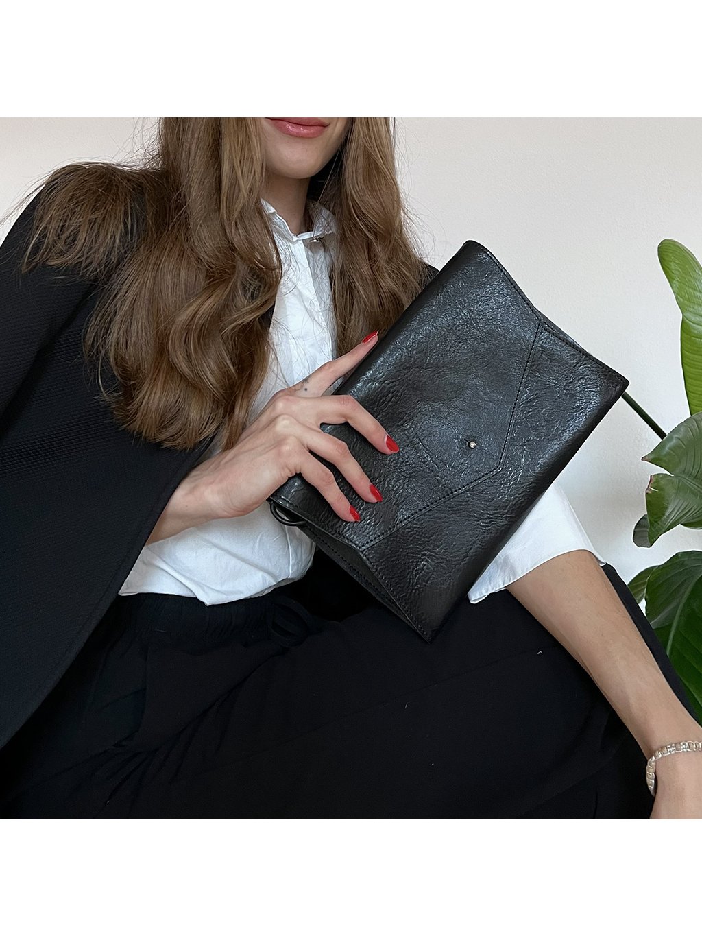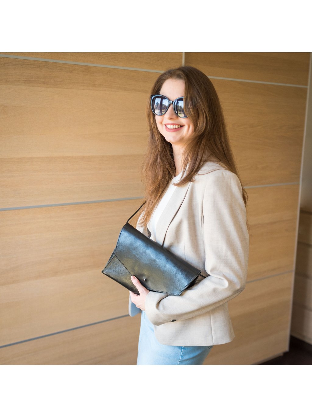 Tahle elegantní kabelka vychází z oblíbeného psaníčka, ale nabízí více prostoru díky chytrému rozevíracímu střihu. Pohodlně do ní uložíte telefon, klíče, peněženku i další nezbytnosti a oceníte i praktickou vnitřní kapsičku. Sedlářský knoflík zajišťuje jednoduché, ale spolehlivé zapínání. Nastavitelný kožený popruh s rozšířením si přizpůsobíte přesně podle sebe, případně ho můžete zkrátit nebo úplně schovat. Kabelku tak snadno proměníte v elegantní psaníčko do ruky i stylový doplněk na předloktí.