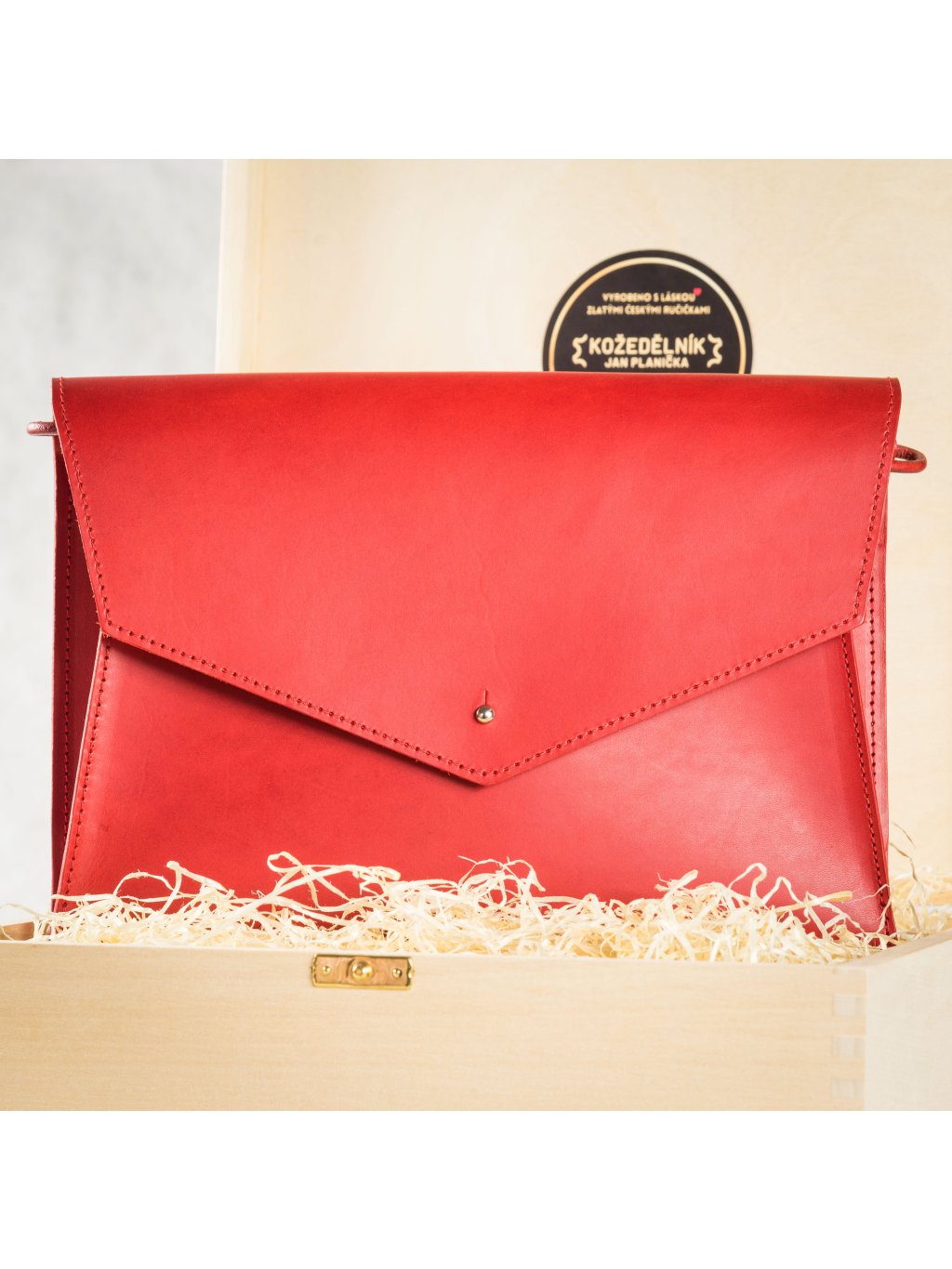 Vnitřní prostor disponuje i plochou zadní kapsičkou na mobil nebo jinou placatou věc. Oproti klasické verzi je toto vyrobené z prémiové italské kůže Buttero, s kontrastním šitím a šňůrkou z kontrastní barvy. Jednoduché zapínání řeší sedlářský knoflík. Tenký popruh z kulatého koženého řemínku můžete odepnout nebo schovat dovnitř pro snadné nošení v ruce.