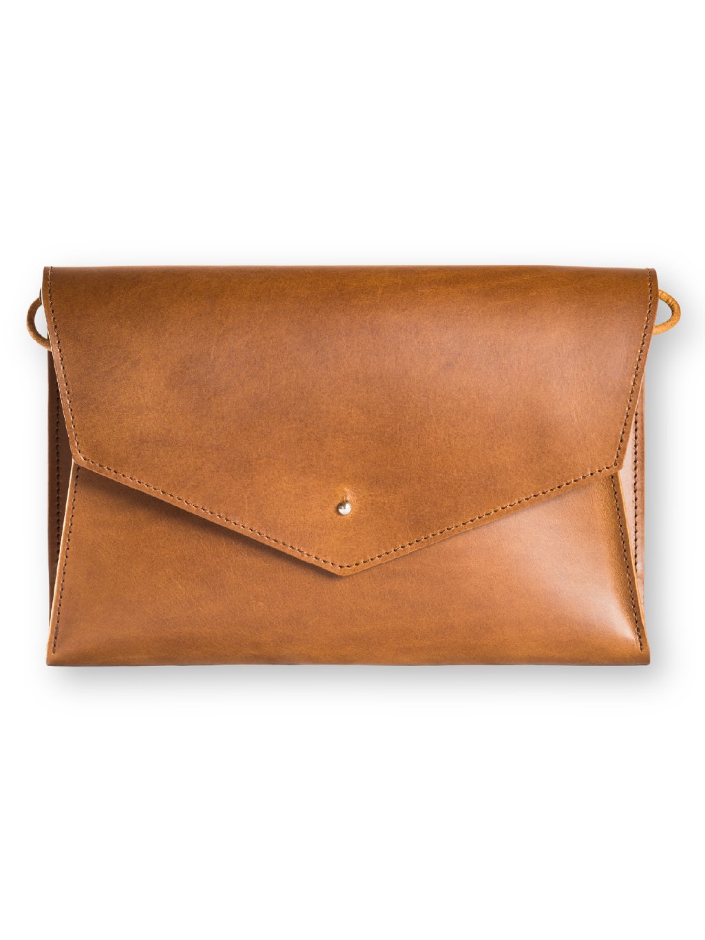 Vnitřní prostor disponuje i plochou zadní kapsičkou na mobil nebo jinou placatou věc. Oproti klasické verzi je toto vyrobené z prémiové italské kůže Buttero, s kontrastním šitím a šňůrkou z kontrastní barvy. Jednoduché zapínání řeší sedlářský knoflík. Tenký popruh z kulatého koženého řemínku můžete odepnout nebo schovat dovnitř pro snadné nošení v ruce.