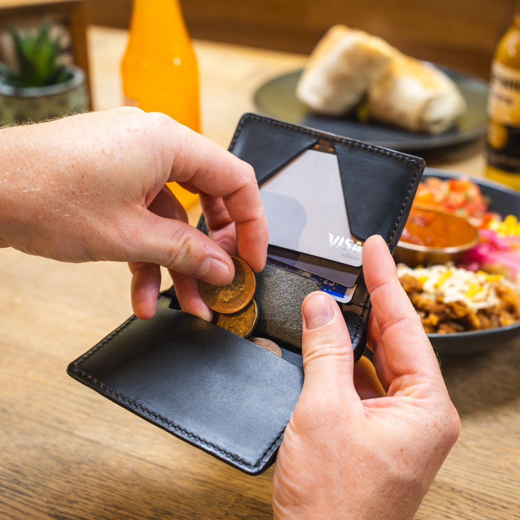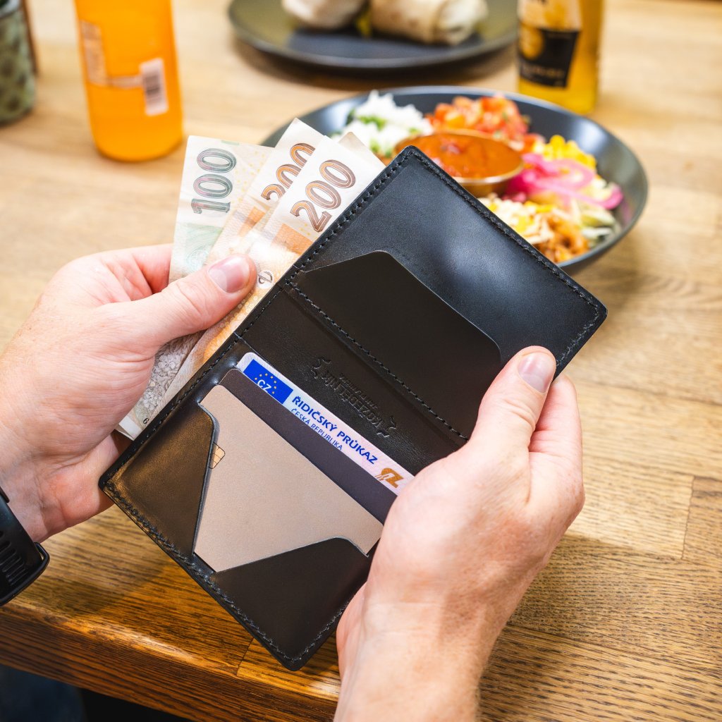 Vejdou se minimálně 4 karty, mince a české i zahraniční bankovky vyšších nominálních hodnot. Originální tvar kapes na karty vyžaduje na začátku chvíli cviku, ale poté se odmění bezkonkurenčními malými rozměry a zároveň vám karty nepropadnou dovnitř. A pozor, pod karetní kapsou je prostor na další nejpoužívanejší karty!