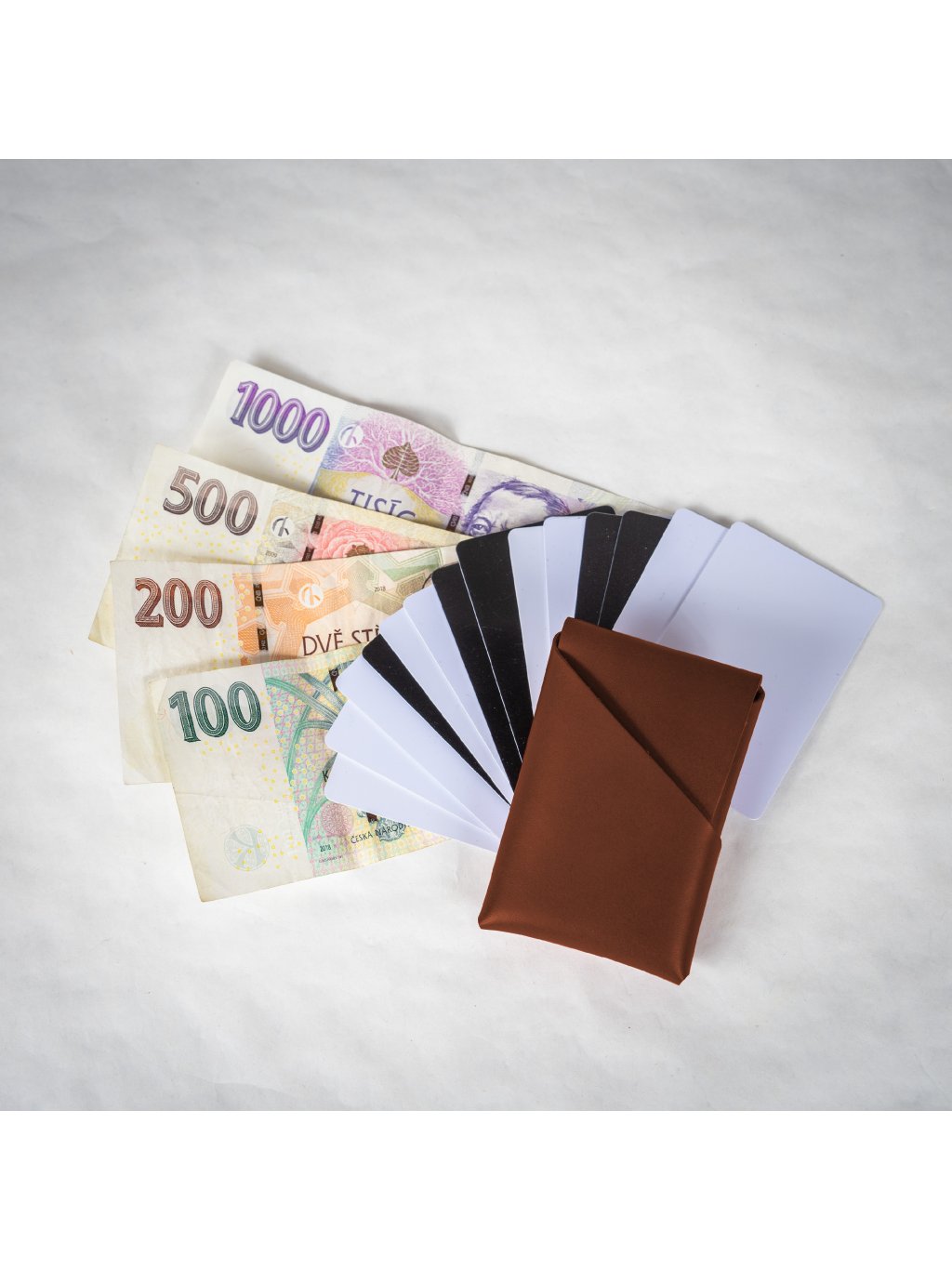 Praktická kožená minipeněženka na cca 20 vizitek nebo 10 karet. Speciální chytrý střih bez jediné nitě. Perfektní do kapsy kalhot, saka, nebo jen tak na hození do tašky.