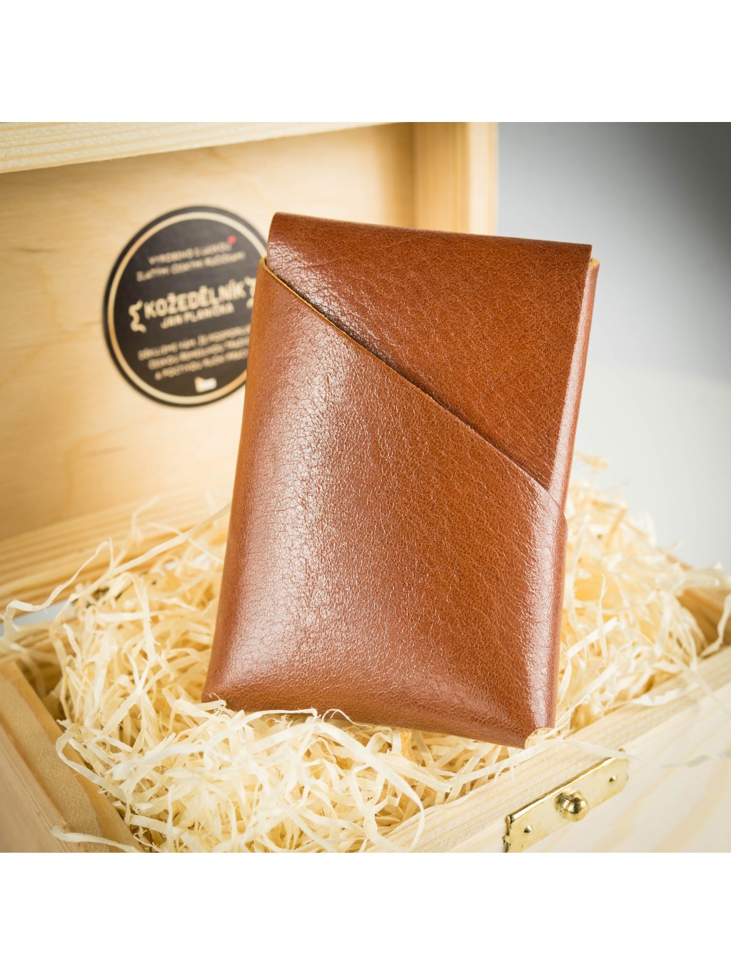 Praktická kožená minipeněženka na cca 20 vizitek nebo 10 karet. Speciální chytrý střih bez jediné nitě. Perfektní do kapsy kalhot, saka, nebo jen tak na hození do tašky.