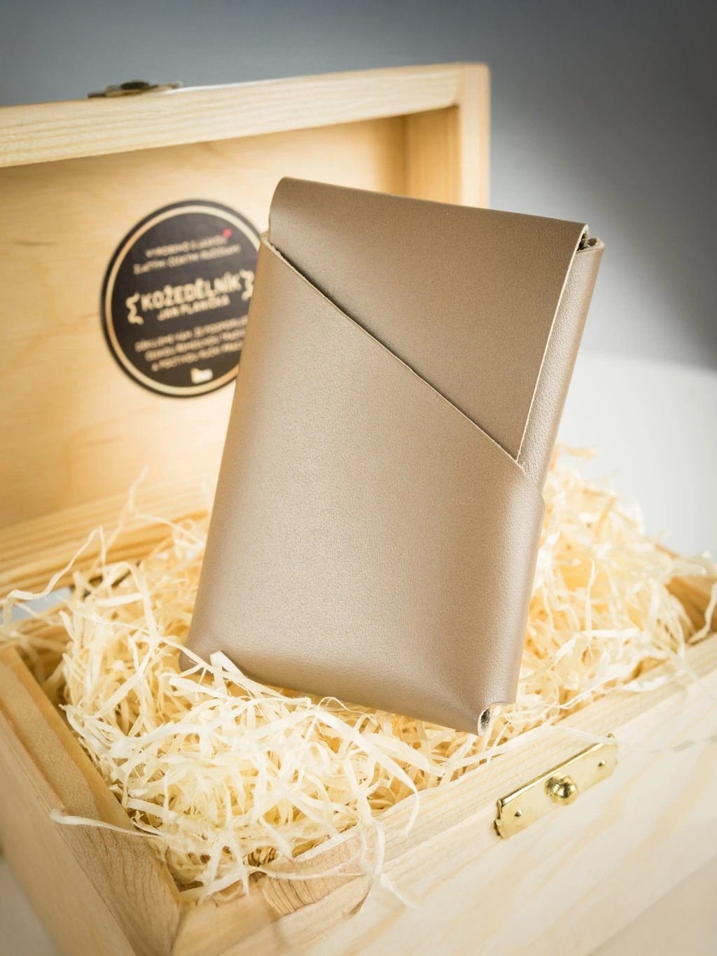 Praktická kožená minipeněženka na cca 20 vizitek nebo 10 karet. Speciální chytrý střih bez jediné nitě. Perfektní do kapsy kalhot, saka, nebo jen tak na hození do tašky.