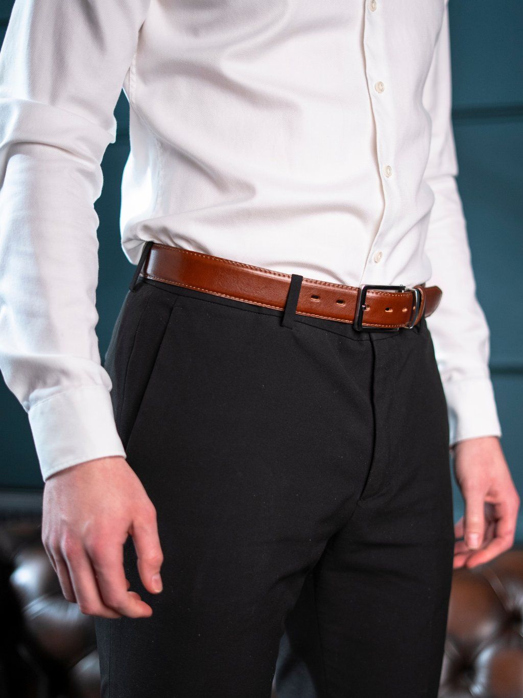 Tento opasek z poctivé hověziny o šířce cca 3,8 cm je pevný, přitom příjemně poddajný a pohodlný na nošení. Každý kus je ručně vyroben na míru vašemu pasu a doplněn nerozbitnou přezkou z nerezové oceli, mosazi nebo odolné zinkoslitiny. Designové barevné prošití a možnost ražby monogramu či jména dodávají opasku osobitý charakter a eleganci. Dvě pevné kožené průvlečky drží volný konec přesně tam, kde má být – čistě a bez vyčnívání. Celý dojem završuje luxusní dárkový box ze dřeva, díky kterému se opasek stává ideálním dárkem i stylovým doplňkem pro každodenní nošení.