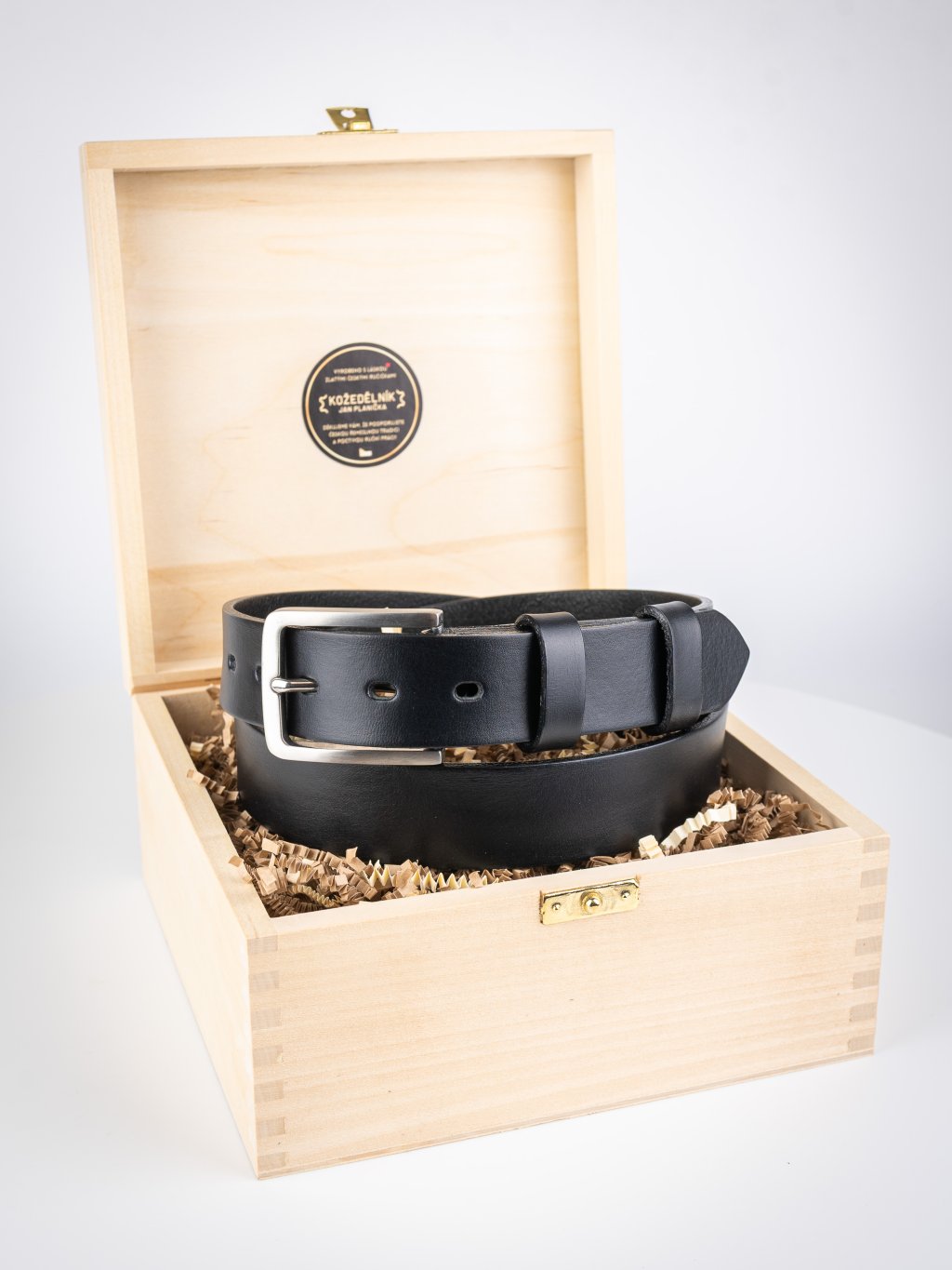 - Luxusního dárkového balení v dřevěném boxu, vhodném ke skladování opasku nebo jiných cenností