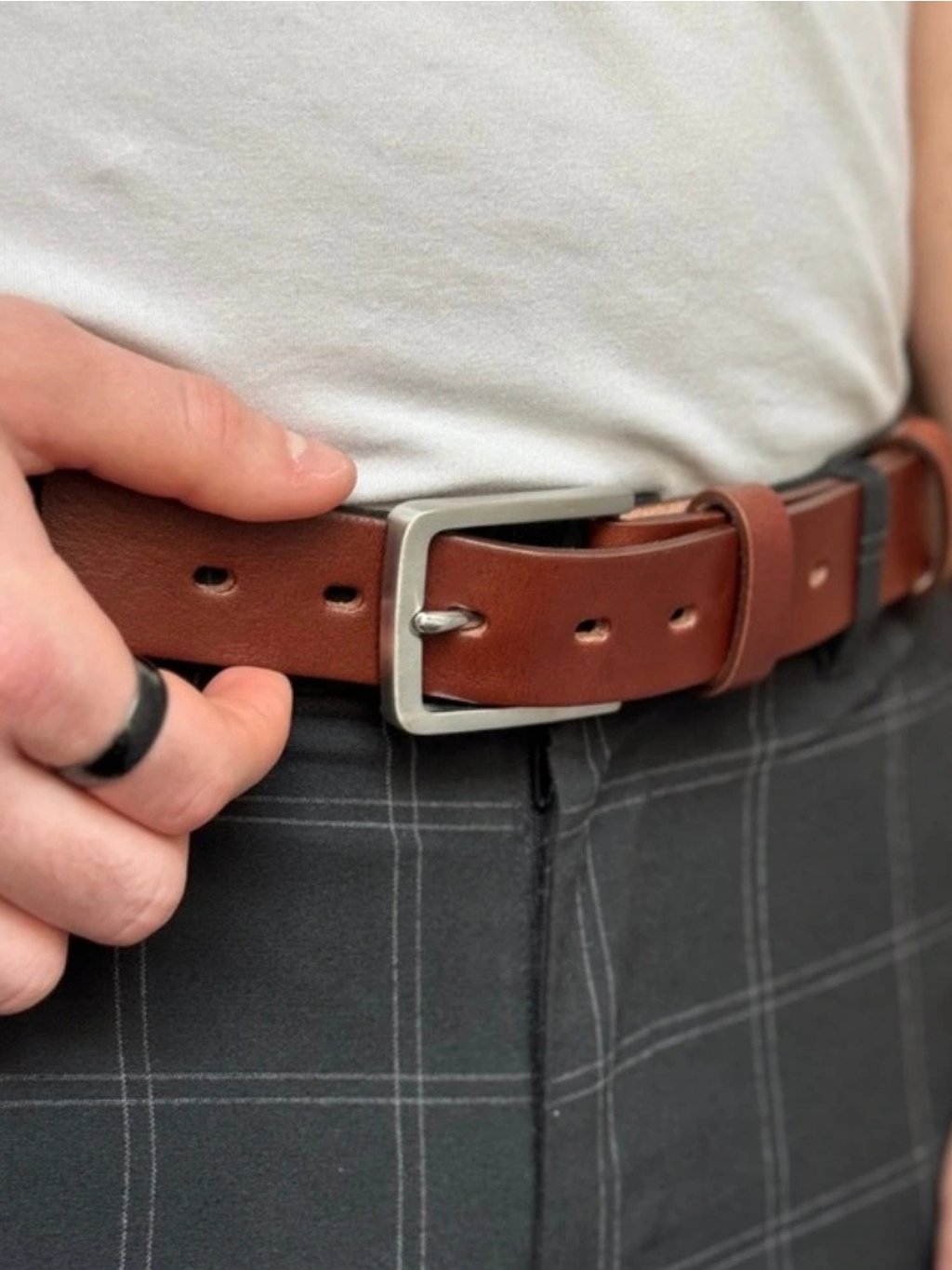 Opasek je vyroben ze silné hověziny s pečlivě zabroušenými hranami, což zaručuje jeho pohodlí a komfort při nošení. Díky těmto kvalitním materiálům opasek netlačí a je ideální volbou pro každodenní použití. Přezky z nerezové oceli či mosazi zaručují dlouhou životnost a odolnost. Pro cenově dostupnější variantu jsou k dispozici i přezky ze zinkoslitiny. Tyto nerozbitné přezky jsou navrženy tak, aby odolaly všem výzvám, které jim každodenní nošení přinese.