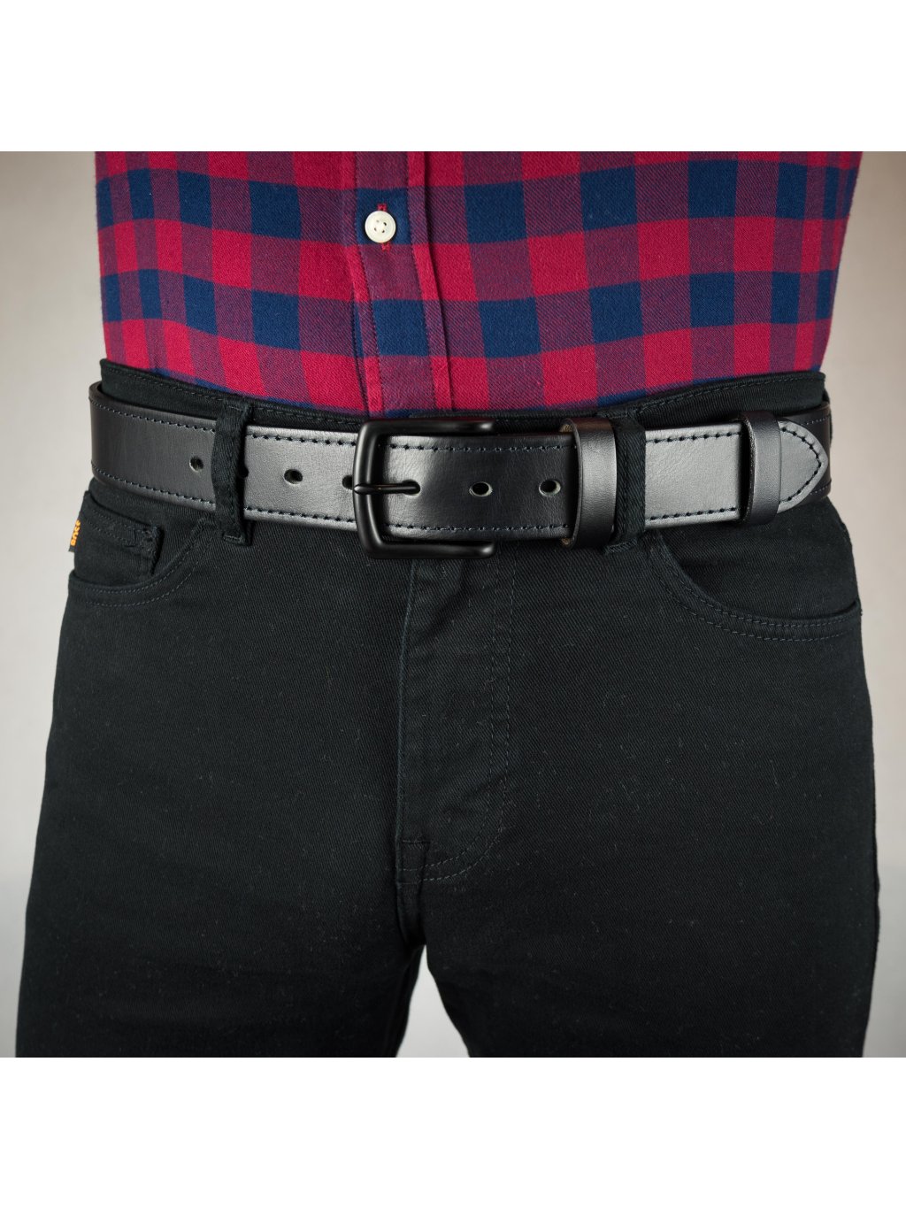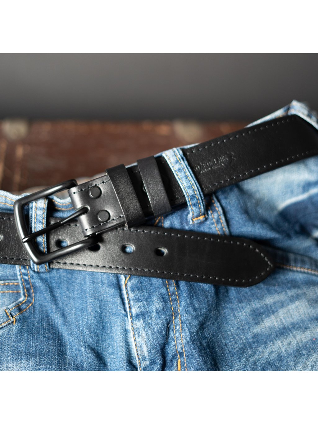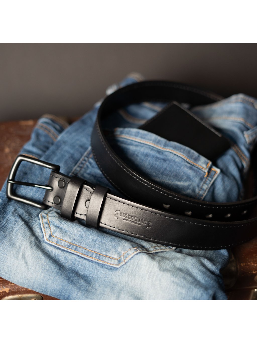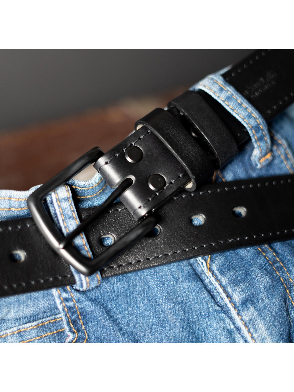 Opasek do riflí černý s černou přezkou i obšitím Pánský kožený pásek do jeansů. Bytelný a nezničitelný
