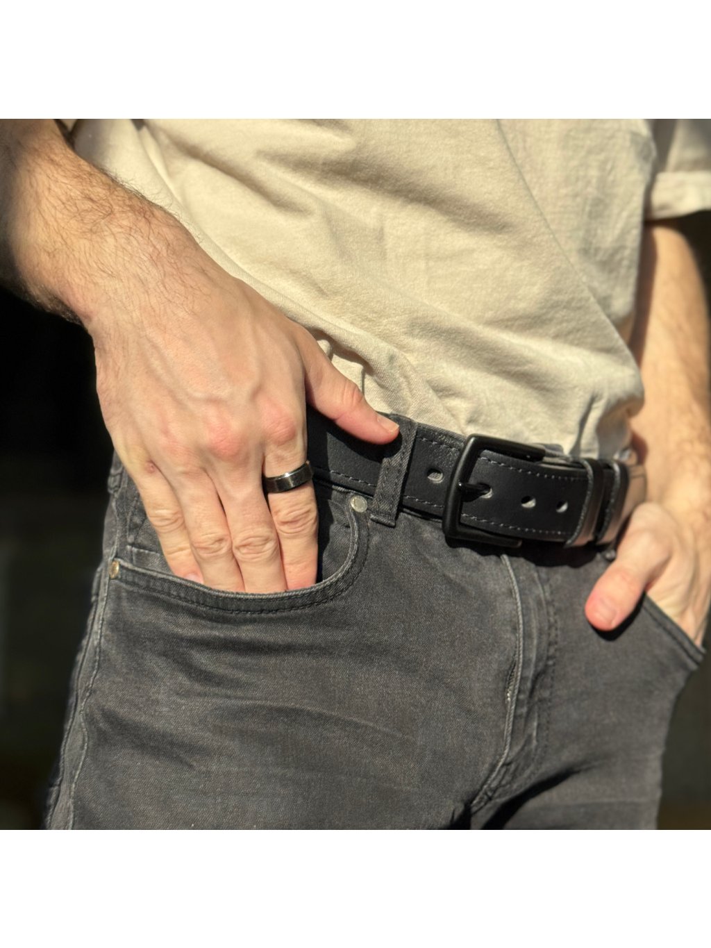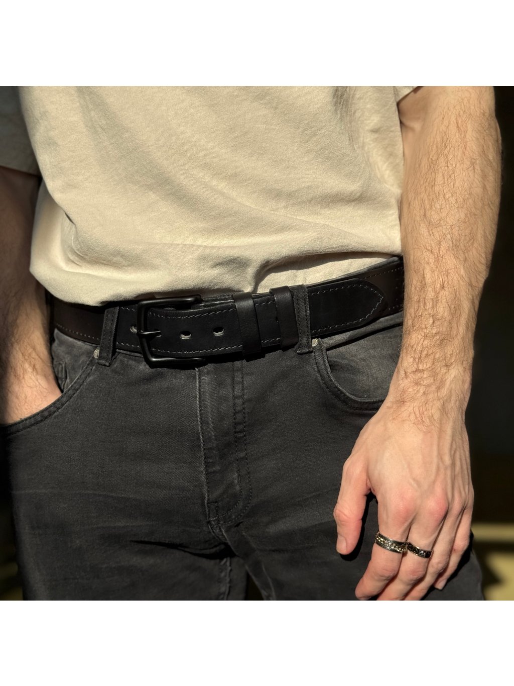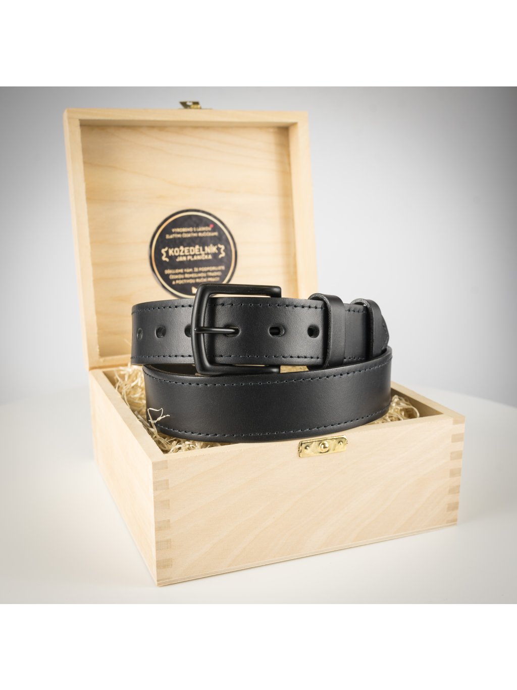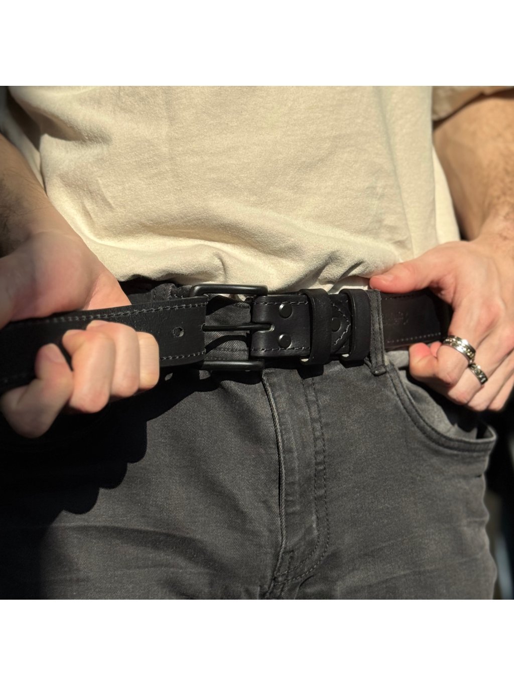 Opasek do riflí černý s černou přezkou i obšitím Pánský kožený pásek do jeansů. Bytelný a nezničitelný