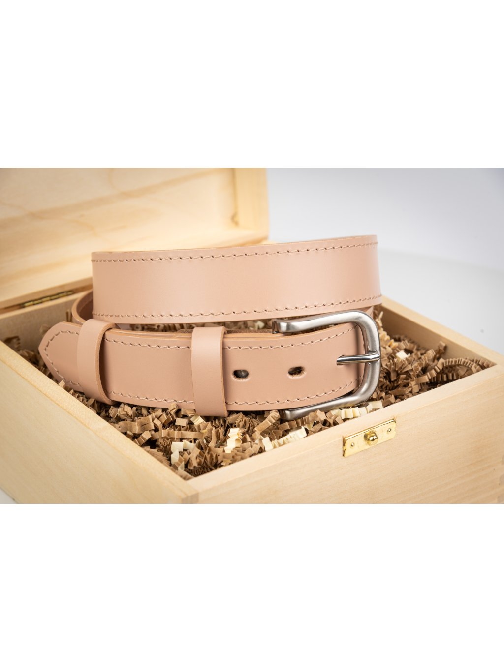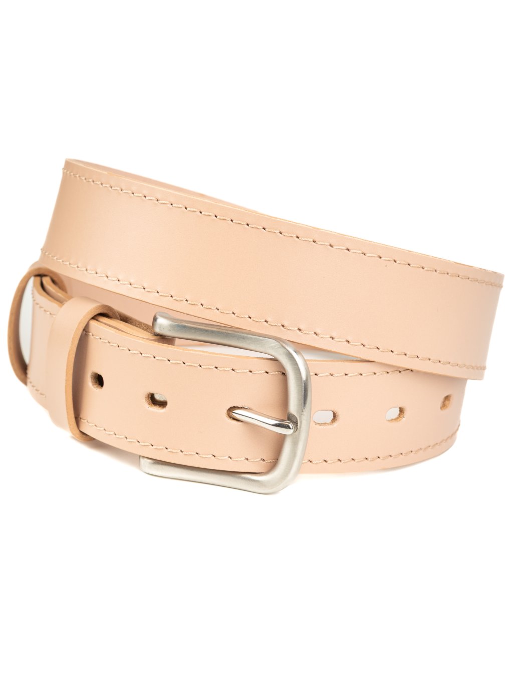 Tento elegantní kožený opasek je ideální do dámských džínů nebo kalhot a skvěle doplní každý ležérní i formálnější outfit. Je vyroben z jednoho kusu prvotřídní hovězí kůže a zpevněn jemným obšitím v barvě řemenu pro delší životnost i styl. Decentní hypoalergenní spona z nerezové oceli je nejen odolná, ale i šetrná k citlivé pokožce. Díky zabarveným hranám opasek neobarví ani nepoškodí vaše oblečení a zůstává příjemný na nošení po celý den. Délku si navíc zvolíte přesně podle sebe, takže vám padne na míru.