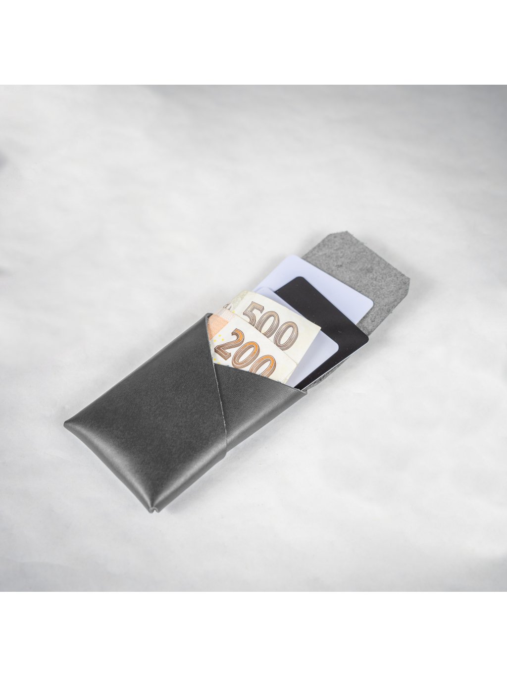 - Kožená minipeněženka s chytrým střihem, která pojme cca 20 vizitek nebo cca 10 karet i bankovku