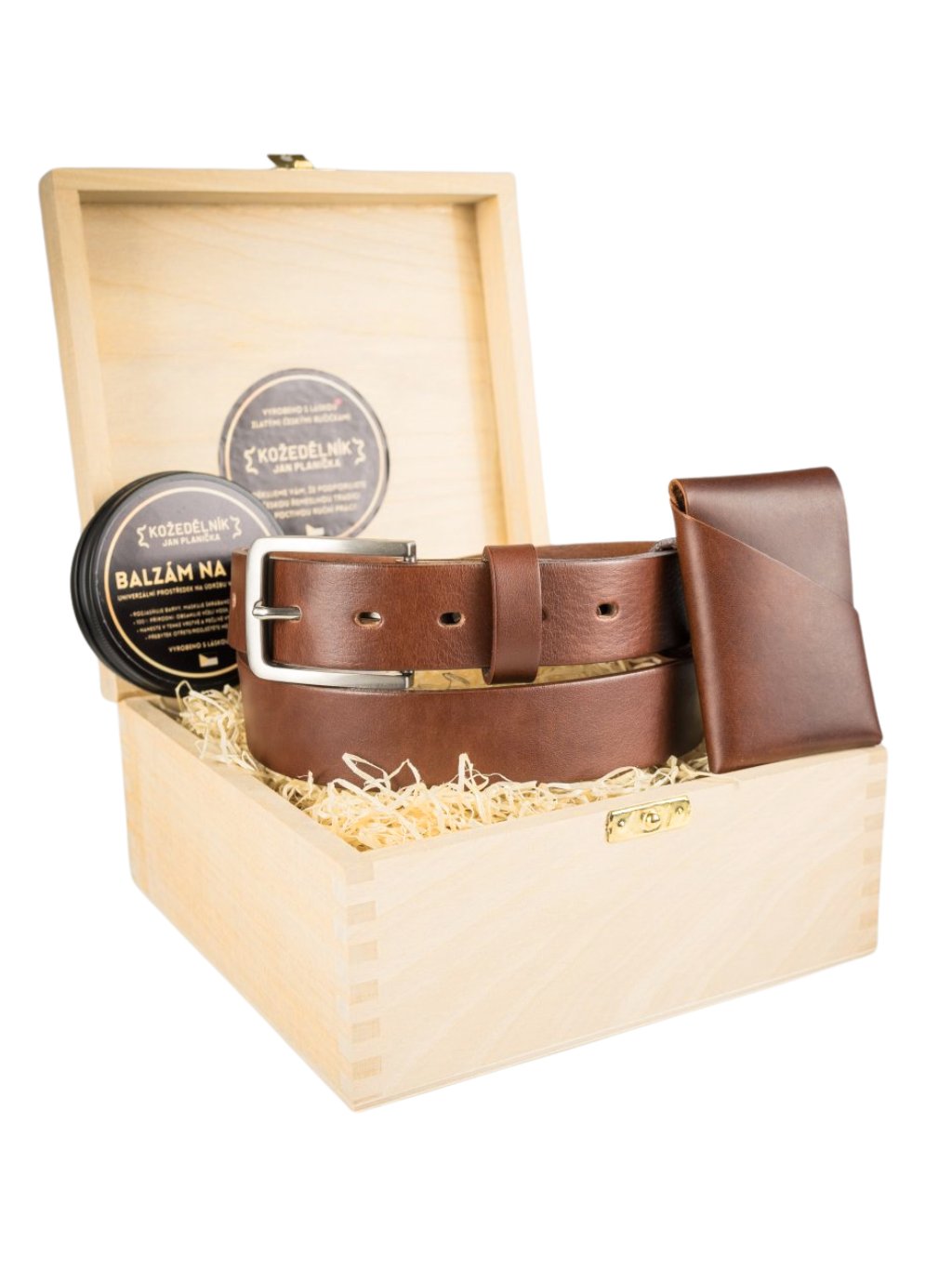 - Možnost luxusního dárkového balení v dřevěném boxu, vhodném ke skladování opasku nebo jiných cenností