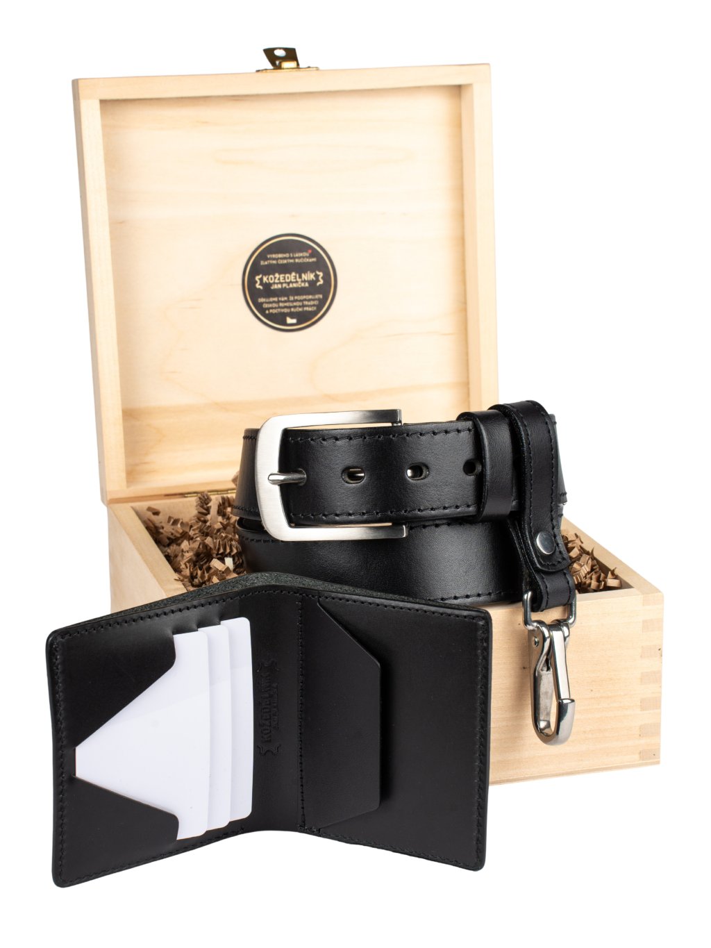 - Možnost luxusního dárkového balení v dřevěném boxu, vhodném ke skladování opasku nebo jiných cenností