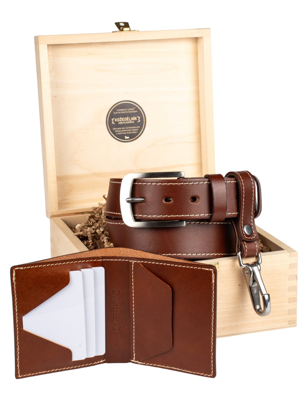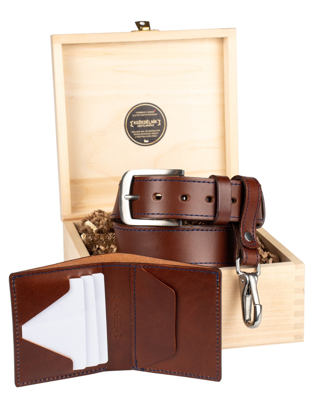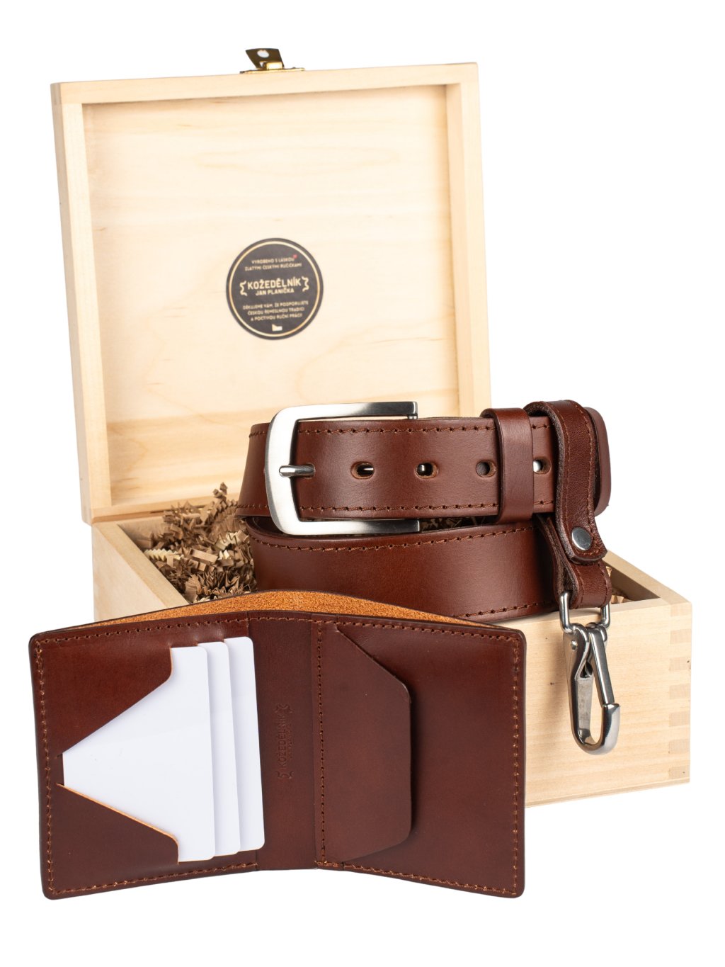 - Možnost luxusního dárkového balení v dřevěném boxu, vhodném ke skladování opasku nebo jiných cenností