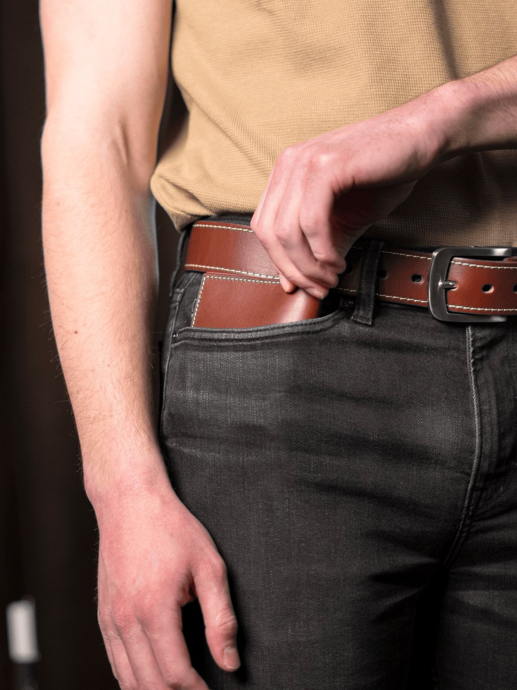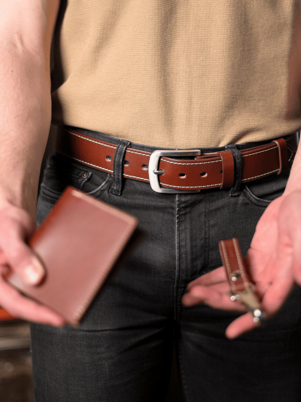 Tento opasek z poctivé hověziny o šířce cca 3,8 cm je pevný, přitom příjemně poddajný a pohodlný na nošení. Každý kus je ručně vyroben na míru vašemu pasu a doplněn nerozbitnou přezkou z nerezové oceli, mosazi nebo odolné zinkoslitiny. Designové barevné prošití a možnost ražby monogramu či jména dodávají opasku osobitý charakter a eleganci. Dvě pevné kožené průvlečky drží volný konec přesně tam, kde má být – čistě a bez vyčnívání. Celý dojem završuje luxusní dárkový box ze dřeva, díky kterému se opasek stává ideálním dárkem i stylovým doplňkem pro každodenní nošení.