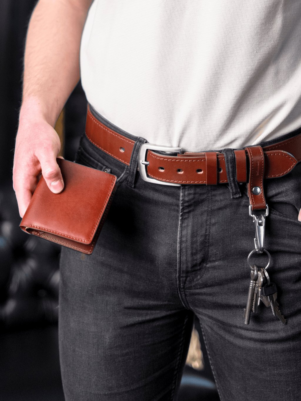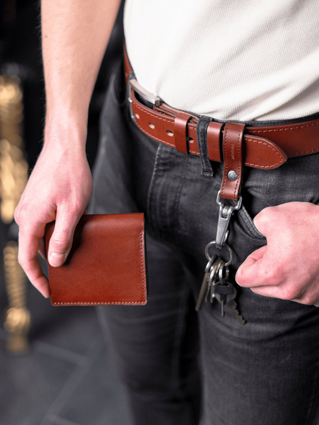 Masivní kožená klíčenka, kterou můžete nosit i jako poutko na opasek, je ideální pro zavěšení klíčů nebo čehokoli, co chcete mít vždy po ruce. Díky své pevnosti zvládne utáhnout tři bečky piva nebo desetinu Fábie – o její odolnosti tedy není pochyb. Elegantní nerezová karabina perfektně ladí s našimi riflovými pásky a dodává klíčence stylový vzhled. Na přání Vám navíc z vnější strany vyrazíme originální monogram, který z ní udělá osobitý doplněk nebo skvělý dárek.
