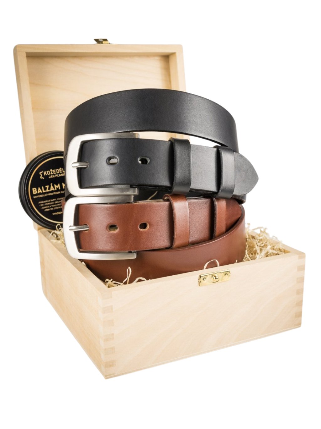 - Možnost luxusního dárkového balení v dřevěném boxu, vhodném ke skladování opasku nebo jiných cenností