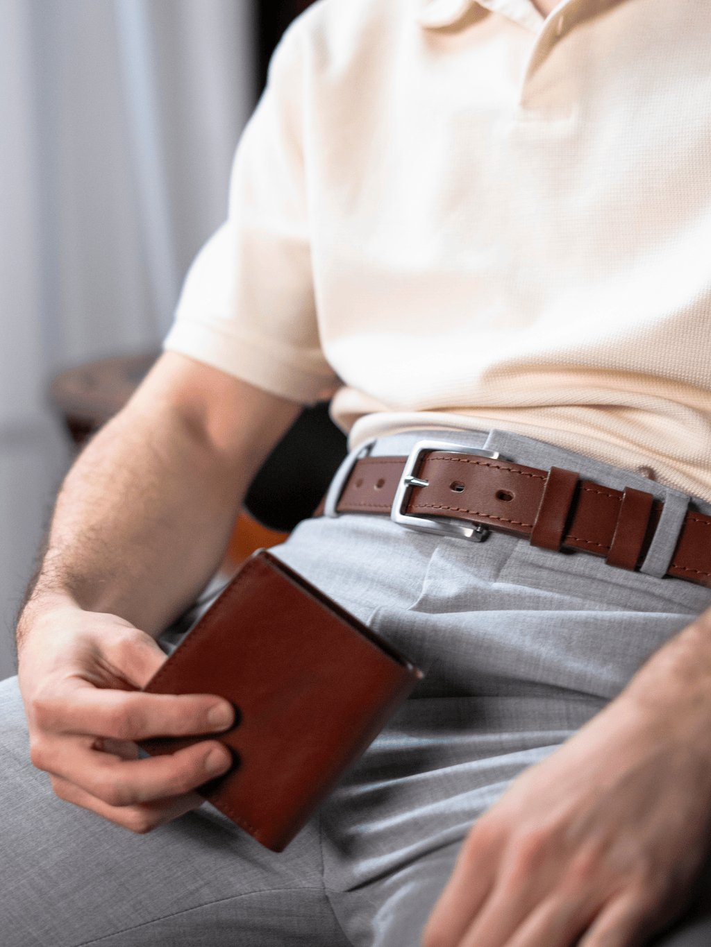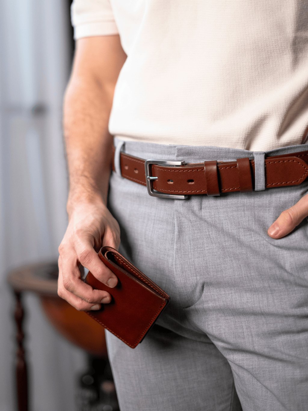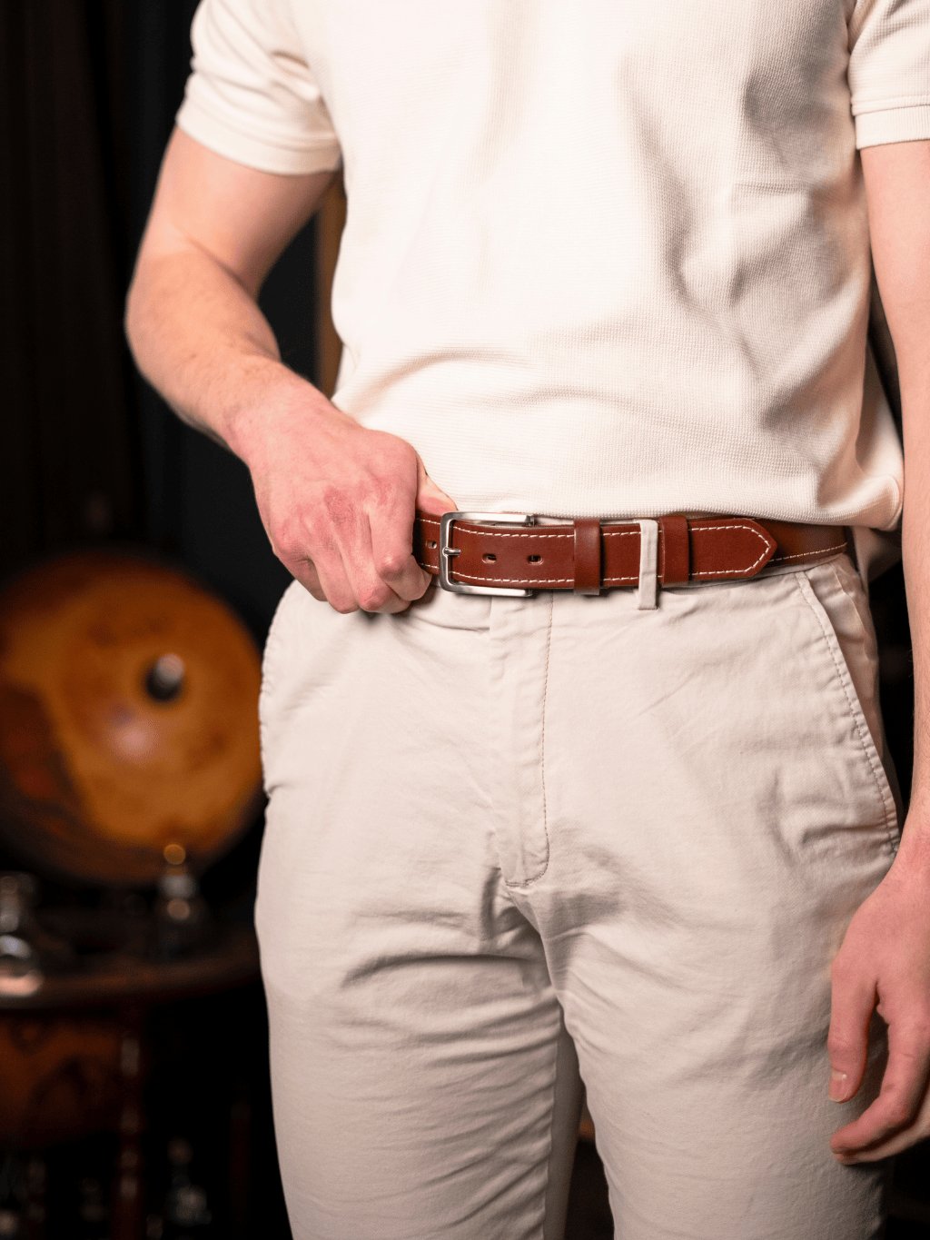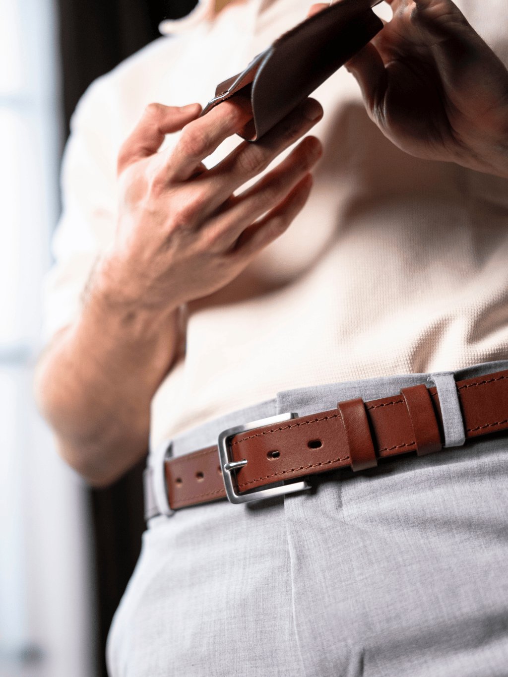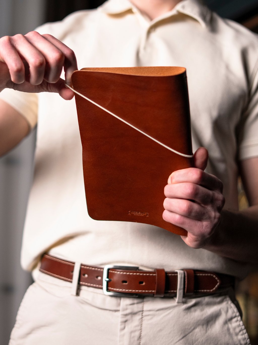 Řemen z poctivého kusu hověziny o šířce cca 3,35 cm je pevný, přitom příjemně poddajný a pohodlný na nošení. Každý pásek můžeme vyrobit na míru vašemu pasu. Na špici vám můžeme vyrazit monogram, jméno nebo heslo. Dvě pevné kožené průvlečky drží volný konec přesně tam, kde má být – čistě a bez vyčnívání. Dárkové balení ve dřevěném boxu završuje dojem udržitelného luxusu. Perfektní je také ve sladěném setu s dalšími našimi výrobky, např. s peněženkou Henry (https://www.kozedelnik.cz/darkove-sety).