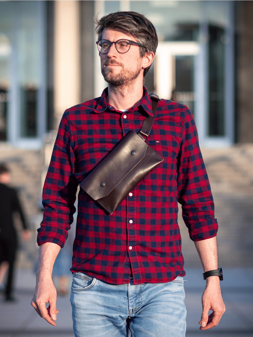 Minimalistická unisex ledvinka pro každý den, kdy jdete ven a nechcete po kapsách tahat peníze, mobil a klíče. Vychází z bestselleru - menší ledvinky Dafné, kterou jsem si vyrobil z černé kůže, doplnil černým kováním a začal ji nosit pro tyto účely. Občas jsem však narazil na velikostní limit, a tak jsem ji vyrobil větší, s ostřejšími rysy a se širším popruhem. Nenápadné černé kování je samozřejmostí.