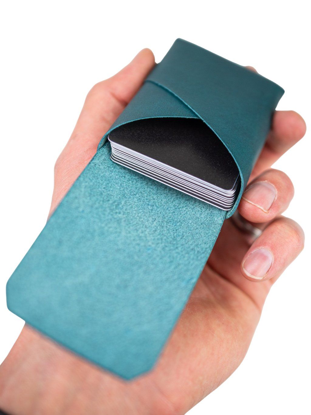 Praktická kožená minipeněženka na cca 20 vizitek nebo 10 karet. Speciální chytrý střih bez jediné nitě. Perfektní do kapsy kalhot, saka, nebo jen tak na hození do tašky.