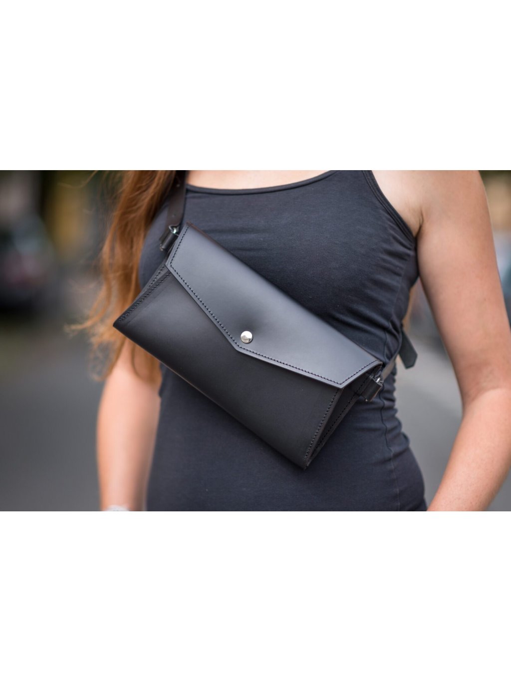 Zoe Luxusní ledvinka - černá Moderní dámská ledvinka z prémiové tužší kůže a s oddělenou kapsou na telefon.